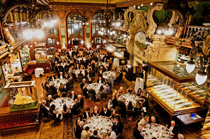 The model room in the clubhouse set the scene for an elegant evening. Everyone in attendance dressed to the nines for the formal occasion. Herreshoff president and executive director Bill Lynn hosted the induction ceremony, filling in for Gary Jobson, who was home with a severe bout of pneumonia.
