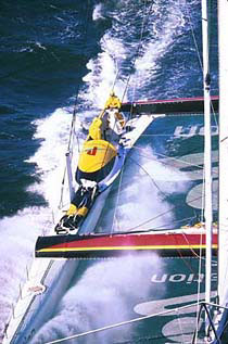 Polish skipper Roman Paszke's 26 meter catamaran is almost back to bare carbon. Once emptied and stripped, her platform will be receiving in the next few weeks a whole series of new equipment destined to provide her with a new level of performance. Inside high technology (new electronics) and relative comfort (new head) are the order of the day. On the outside, renovation is total. It concerns not only the livery, but also the winches, sails and above all the mast which will replace the one lost in February 2000 during her successful bid for qualification between Cadiz and San Salvador. 'Polpharma-Warta' should be returning to the Baltic Sea by mid-July.
