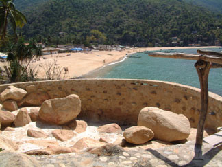 More YelapaMarch 29 - Yelapa, Mexico A few days ago we ran a photo of Yelapa and thought you might like to see more of this unusual - you can only get there by boat - cruiser favorite in Mexico. Looking down at the main beach from the now empty semi-natural swimming pool Yelapa is full on jungle. This small sailboat is kept inside the lagoon. When the owners want to use it, they get a bunch of friends to drag it over the bar. Yelapa is labor intensive. You should see how much trouble this guy had pushing the loaded wheelbarrow over the sand beach. There are new and old dinghies in Yelapa. Can you tell which is which? Our panga driver was a cool guy - whose knee joints were destroyed by a case of the bends. Photos Latitude/Richard |