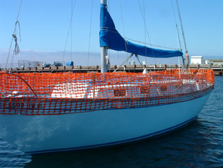 September 5 - Monterey "Here is the 'poop' from from Monterey," writes Ron Sherwin. "And poop is the correct word, for Monterey Harbor has been invaded by a herd of seals who are really fouling the place. In fact, the harbormaster has posted warnings about washing hands after handling anything, such as docklines, that have been in the water. And it's not a good time to be a scuba diver in the harbor. "Numbering in the high hundreds - if not low thousands - the seals first established a colony in the inner harbor near Wharf #1 - the one on which the tourist attractions are located. After the seals had invaded the sidewalk around the wharf, the city had its hands full trying to keep tourists and seals separated. The city finally erected a chain link fence to stem the invasion. Unable to establish a suitable beachhead in the inner harbor, the seals retreated to the outer harbor, where they invaded the beach below the bayside pathway - as well as the pathway itself. Surrounded by a second chain link fence, the seals have forced the city into a stalemate. "Meanwhile, the seals have enriched the notion of 'partying and boating with friends,' as the accompanying photos illustrate. The earlier photos illustrate what measures some boat owners have taken to prevent the seals from boarding their moored boats. The seals have 'hijacked' several moored boats, and have discouraged all attempts to dislodge them. The seals nearly sunk the hijacked boats after thoroughly trashing them, leaving broken lifelines and other deck hardware, and filling cockpits with droppings. Using power washers, the poor boat owners have the unpleasant job of cleaning up the mess. Cleaning up seems only partial, since fiberglass decks appear destined to retain stains and odors indefinitely." |