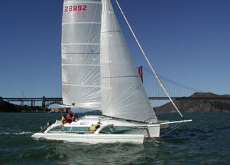 More Fiasco PhotosFebruary 9 - San Francisco Bay Paul Martson, sailing his Corsair 31, Sally Lightfoot, in the Three Bridge Fiasco on the last day of January, reports in with the following photos: ![]() This is what the scene looks like by the time the multihullers show up. 270 shorthanded sailboats in one place (at 10:00 am? In winter?) ![]() Tim Cahill-Obrien's F-31 Wahoo ![]() Dan Benjamin's Aerodyne 38 Fast Forward (he won his singlehanded division). "This is the exact same spot Dan went aground in last year's race!" comments Martson. "We know, because (coincidentally) we were overlapped with him at Red Rock last year too." ![]() Singlehanded Shrimping Society Photos Paul Martson For more of our coverage of this very fun, very popular event, see last week's 'Lectronic Latitudes on Monday and Wednesday. Also see event organizer Singlehanded Sailing Society's Web site for results, at www.sfbaysss.org. |