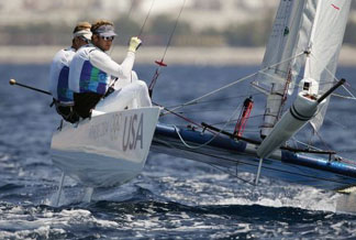 Olympic Sailing Wrapup: My Big Fat Greek BlowoutAugust 30 - Athens, Greece ![]() Paul Foerster (skipper) and Kevin Burnham Team USA finished with only two medals in the sailing portion of the 28th Olympiad which wrapped up yesterday: a gold in Men's 470 and silver in Tornados. This frustrating performance was slightly better than the two bronzes in Savannah in '96, but quite a turnaround from the glory days of Long Beach in '84 (7 medals in 7 classes) or Barcelona in '92 (9 medals, 10 classes). The disappointing showing was due to two things: the increasing proficiency of sailors from other countries, and the fluky, unpredictable breezes of Greece's Saronic Gulf, where large windshifts shuffled the deck in many fleets many times. Paul Foerster and Kevin Burnham's gold medal winning record - 1,8,2,15,9,4,3,7,18,4,(22) - gives some indication of the goofy conditions these sailors had to deal with. Foerster, who makes his home in Dallas, sailed his first Olympics in Flying Dutchmans in Pusan, Korea, in '88. He took silver in the same class in Barcelona in '92 (which was also the swan song for the FD). Paul sat out the '96 games, then got heavy into 470s, adding another silver medal to his cache in Sydney in 2000. Shortly after the 2000 games, Foerster got a call from Kevin Burnham, who won 470 silver with Morgan Reeser in 1992, and the two have been sailing together ever since. Obviously, the chemistry works. And talking about chemistry, over in the Tornado fleet, John Lovell and Charlie Ogletree's long-running chemistry - they even share the same birthday! - earned them a silver medal. The two have improved steadily after finishing 7th in Sydney in 2000, and 8th in Savanannah in 1996. John hails from New Orleans and Charlie is from Houston via Newport Beach. ![]() U.S. Silver Medalists John Lovell (skipper) and Charlie Ogletree A noteworthy honorable mention, goes to the Bay Area's Paul Cayard, who, with crew Phil Trinter of Ohio, started the Star competition off with a win in the first race. Although Brazil's Torben Grael eventually amassed an unassailable lead and sat out the last race, the silver and bronze spots were up for grabs until the last race, and Cayard/Trinter were contenders. In the end, they ended up fifth. Grael, by the way, now has five Olympic medals, four of them in the Star Class and one for Solings in 1984. The sailing portion of the games was held at the Agios Kosmas Sailing Center, about 20 miles from the Olympic Village. There were 11 events using 9 boat designs (two, the Mistral boards and 470s, had men's and women's divisions). All fleets raced 11 race/1 throwout series, except the 49ers, which did 16/1. When it was over, the 33 medals had been dispersed between a record 21 nations. Historically, since sailing (then yachting) was first included in the Olympics in 1900 (and including the just-completed Athens Games), the U.S. has the highest medal tally with 56, including 17 golds. Great Britain is second (45, 19 gold) with Norway third (31, 17 gold). Great Britain was the big winner in 2004 with five medals, including two golds (Finn and Yngling), followed by Spain with three (including gold in the 49er). In addition to the United States, six other countries won two medals: France, Brazil (two golds), Greece, Austria, Ukraine and Denmark. Here are the breakdowns for the various classes: Mistral Men