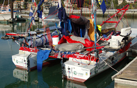 Italian Sets New World RecordAugust 28 - Belvedere After more than 62 days at sea, Alessandro di Benedetto passed under the Golden Gate on August 11 to become the first person to sail non-stop from Yokohama to San Francisco singlehanded on a catamaran less than 20-ft, a record which has been ratified by the World Sailing Speed Record Council. ![]() One World, a "non-habitable" 19-ft plywood sport cat, at San Francisco YC nearly a full two weeks after setting a world record. Photo Latitude/LaDonna This isn't the first record set by the 35-year-old French/Italian adventurer. In 2002, he set the WSSRC record for the first singlehanded Atlantic crossing in a sport cat. His Web site, www.alessandrodibenedetto.net, discusses his preparation and reasons for undertaking such passages: "This exploit requires a psychophysics preparation to a very high standard and the use of the latest technologies. The objective is a successful crossing with resultant media attention and the diffusion of a message of Peace and for the protection of the environment." - latitude / ld |