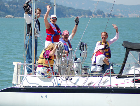 Jazzin' It Up to BeniciaSeptember 6 - Benicia ![]() Mixin' it up: Dave Badtke's unnamed Corsair Sprint 750 leads the Santana 35 Spirit of Elvis, the Hunter 31 Sunset Woman and the Corsair 24 Puppeteer, all racing in different classes. Weather conditions for the mid-day starts of South Beach YC and Benicia YC's 18th annual Jazz Cup on Saturday, September 2, were overcast and dreary - enough so that some of the hundreds of crew aboard the 105 competing boats probably wished they'd stayed home in bed. But a few miles up the course the summer sun came out, causing many to peel off the layers of fleece and Gortex. ![]() Robert Farris' Hunter 54 Source of Sanity was well named - as he and his crew obviously enjoy sunny days on the water. With not much more than 12 knots of breeze, this wasn't one of the windier Jazz Cups in recent memory, with a number of boats taking more than five hours to complete the 26-mile course from Treasure Island to Benicia. At the other end of the spectrum, however, the nothin'-to-it performance of a large multihull turnout may have tempted some monohullers to convert to 'the dark side'. ![]() Bill Erkelens' D-Class cat Adreneline broke away early from Tuki (background). But by the finish, Tuki had a five minute lead. Photos Latitude/Andy Some of the closest boat-for-boat racing was within the seven-boat F-24 class, while Tuki, Peter Stoneberg's Morelli Prosail 40 scored a clean sweep: line honors, first in class and first in fleet. South Beachers Michael and Lorianna Kastrop again took the Jazz Cup trophy with their Catalina 30 Goose. Look for a complete report in the October issue of Latitude 38. See www.southbeachyc.org for full results. - latitude / aet |