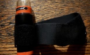 Velcro strap holds in on your arm. Works fine, never has seen water. Battery... more