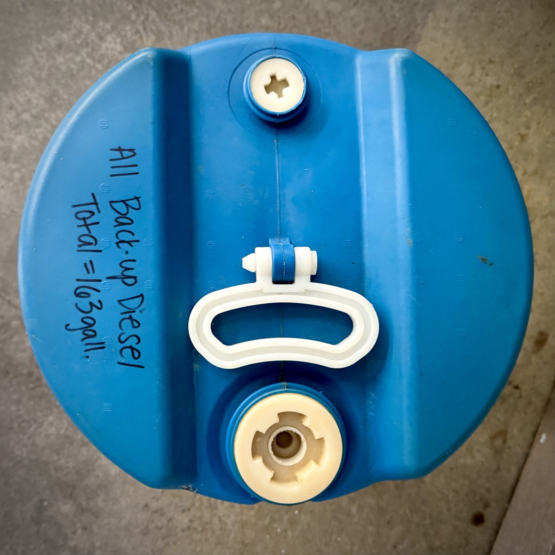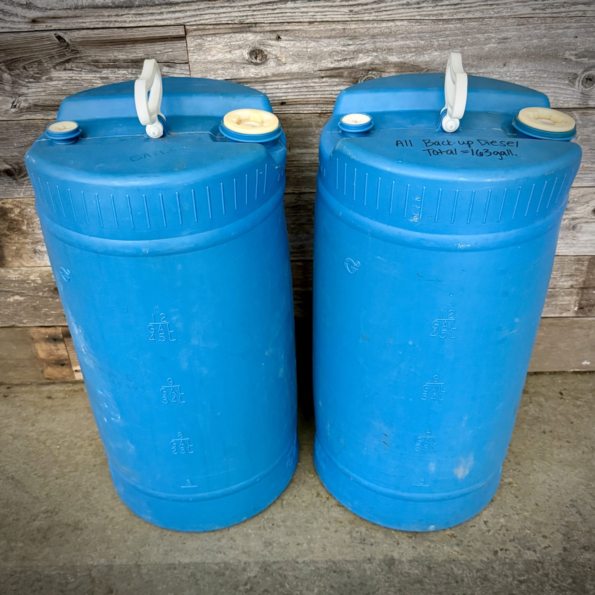 2x 15-Gallon Blue Plastic Diesel Barrel. Used – good condition. Durable, Reusable, Portable (value $94 each barrel)