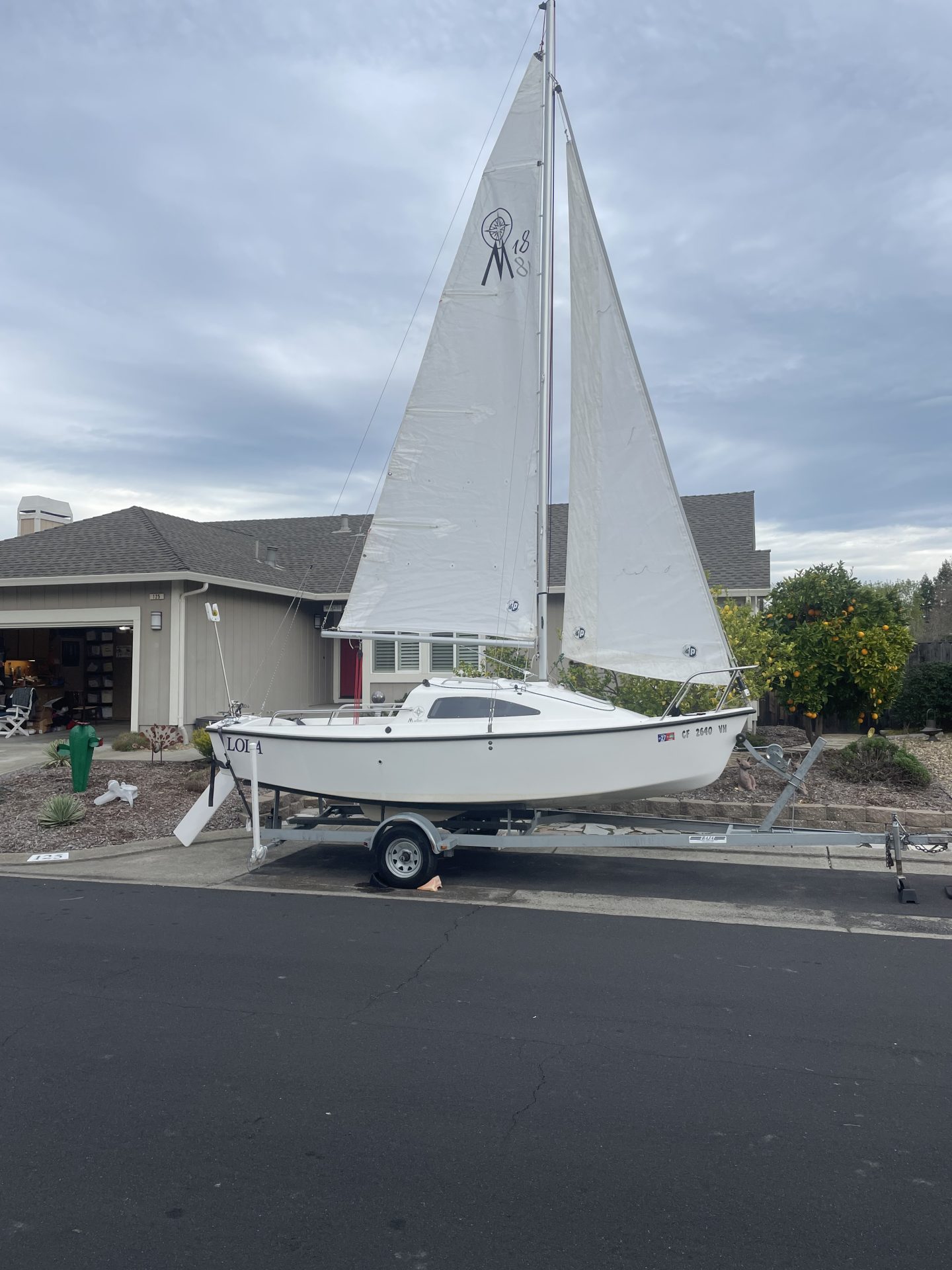 Trailerable. Swing keel and rudder. Tohatsu 6hp outboard. In Martinez Marina currently. Almost new. Selling for $45K new. Sail the freshwater lakes this spring/summer.