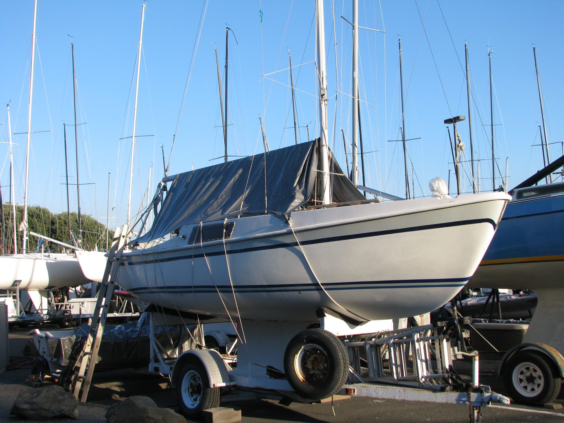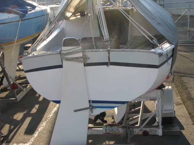 On trailer with 4hp four-stroke Mercury motor. Good sails, newly painted interior and deck painted. Clean boat! Reinforced rigging. Some extras, anchor, etc. More info. phone Theo. $3500. Richmond Yacht Club, Richmond, CA. 925-872-0403