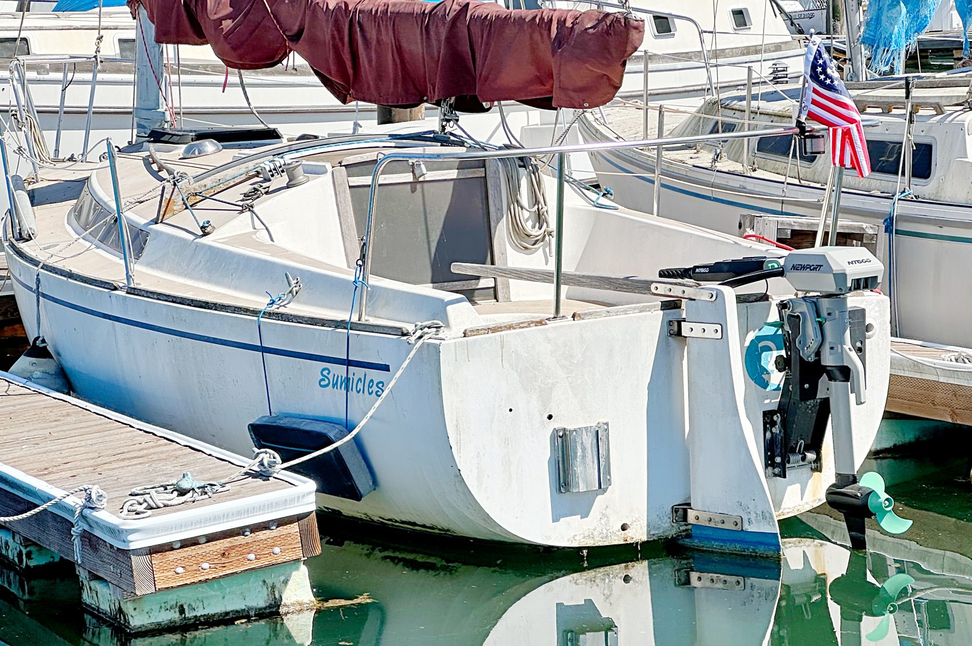 Catboat, galley flush toilet sleeps four with new Newport NT600 4.4 hp electric motor (2026) never used.. with self contained loPro iron phosphate lithium battery BMS and charger. Great daysailer or weekender. fiberglass, needs TLC and varnish on exterior teak trim. New mainsail in 2022. Owner diagnosed with stage 4 cancer and must sell.