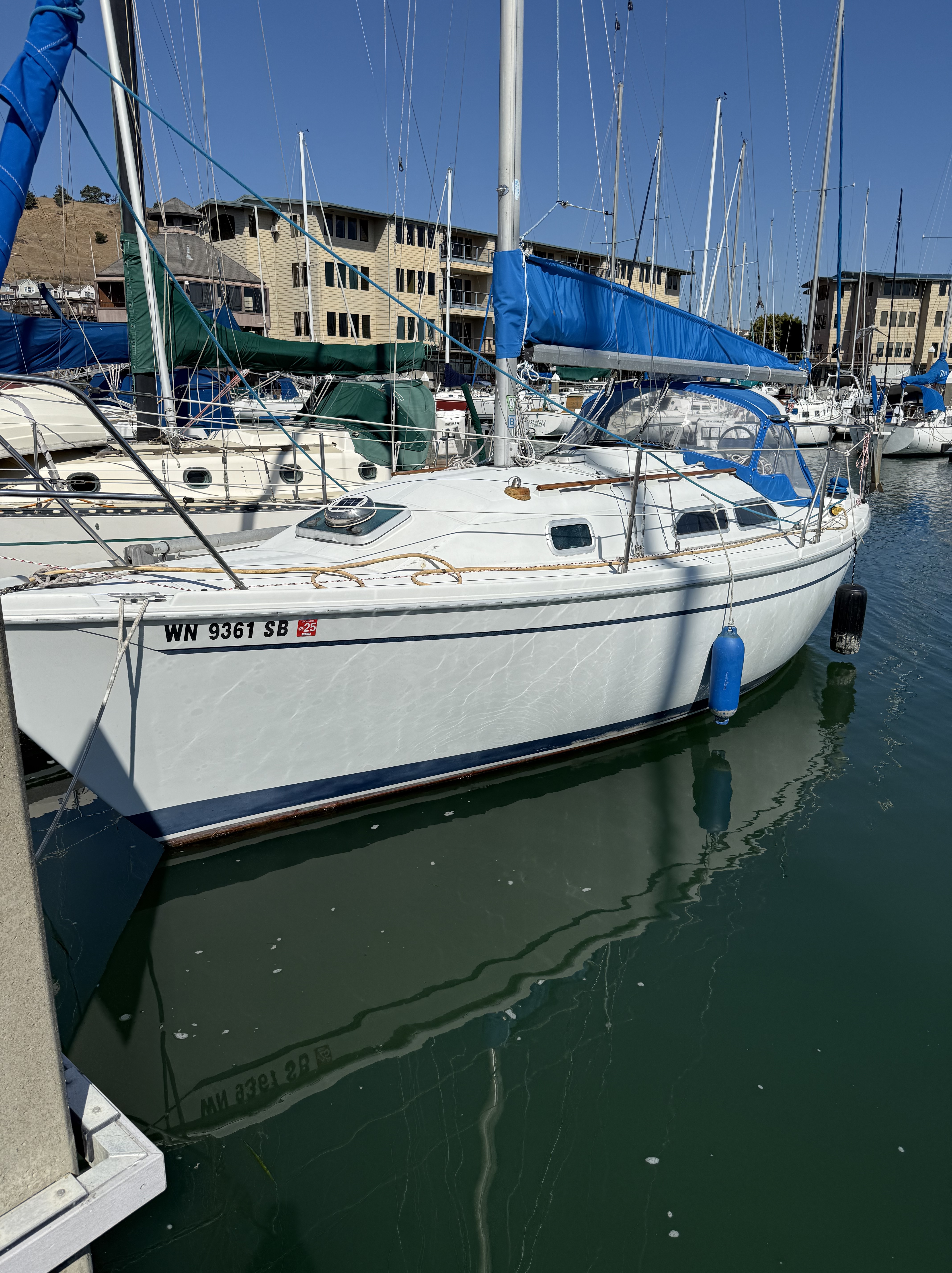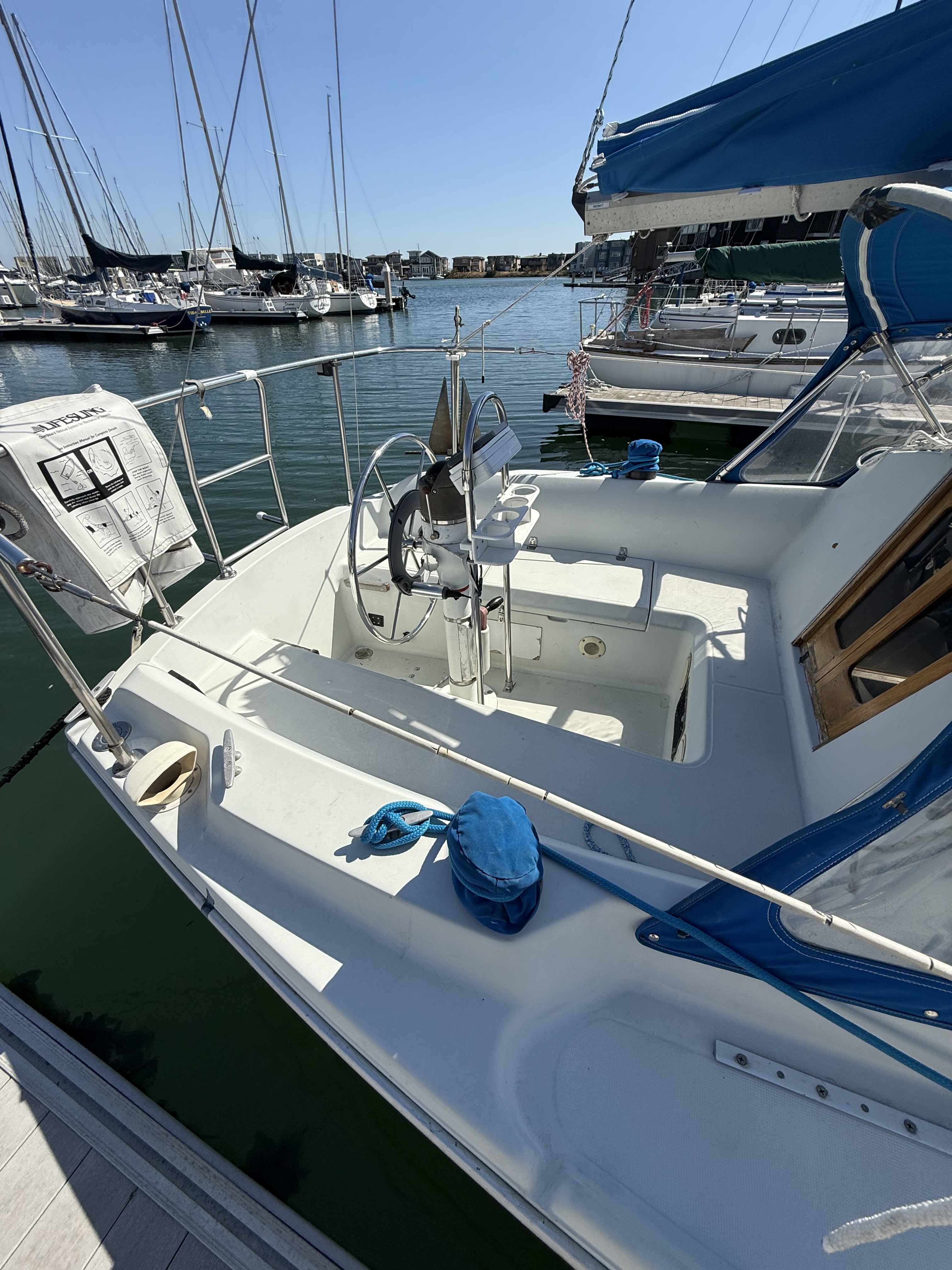 Classic small yacht in excellent condition. Stable and fun. Roller furling jib, wheel, dodger. 10 hp Universal condition in excellent shape. New in 2024: standing rigging, wheel pilot, wireless wind instrument, StackPack. cushions.