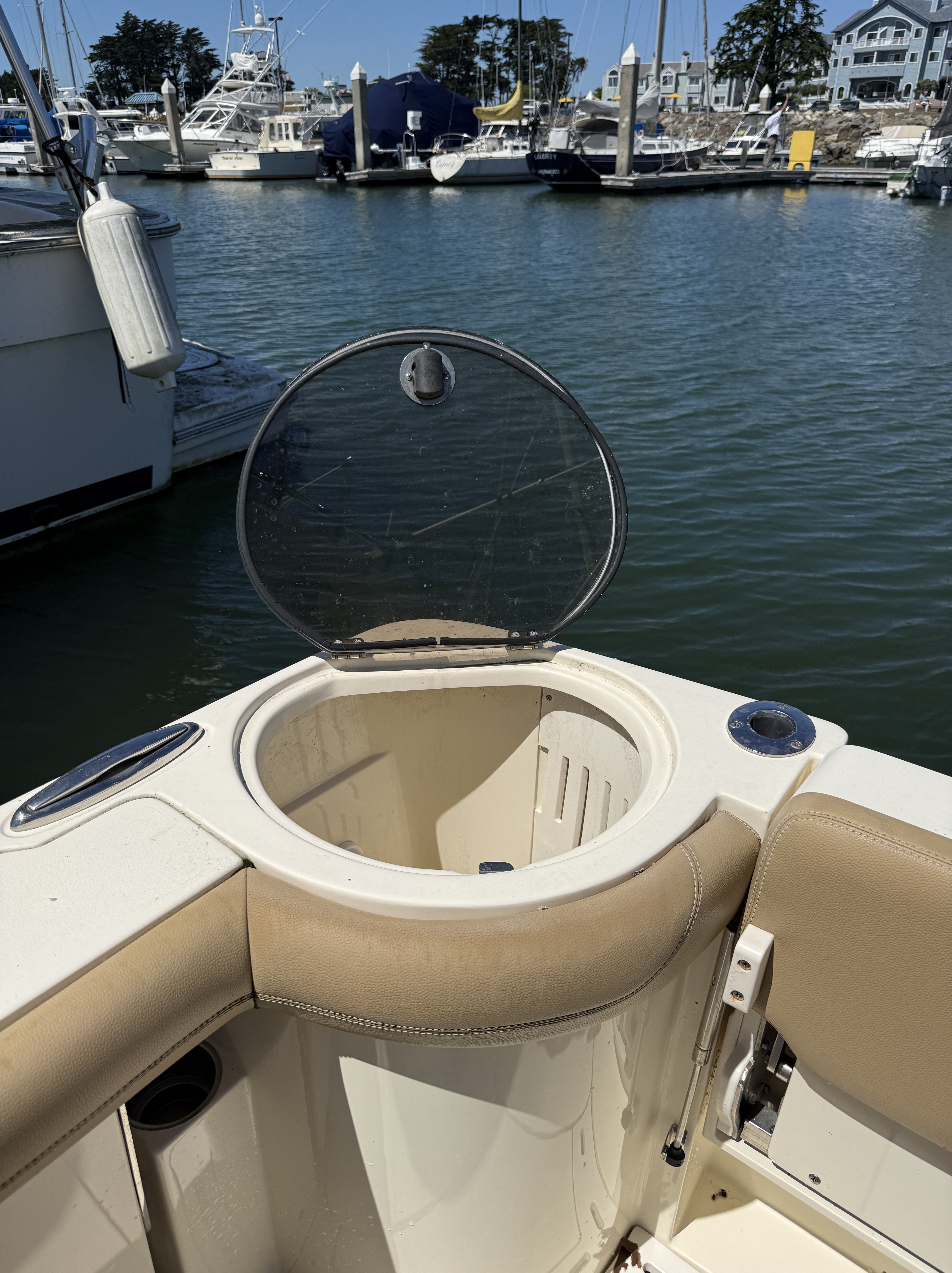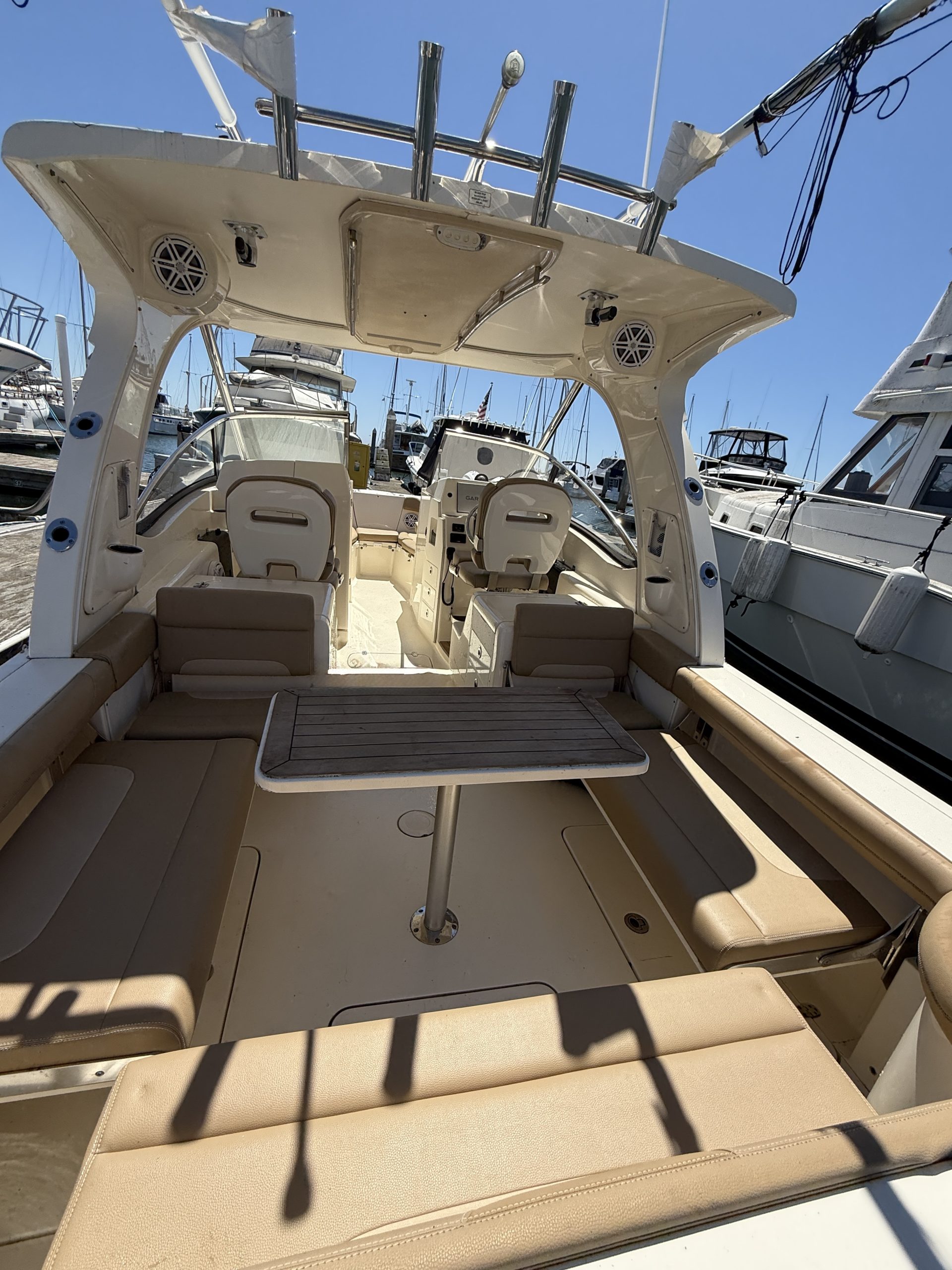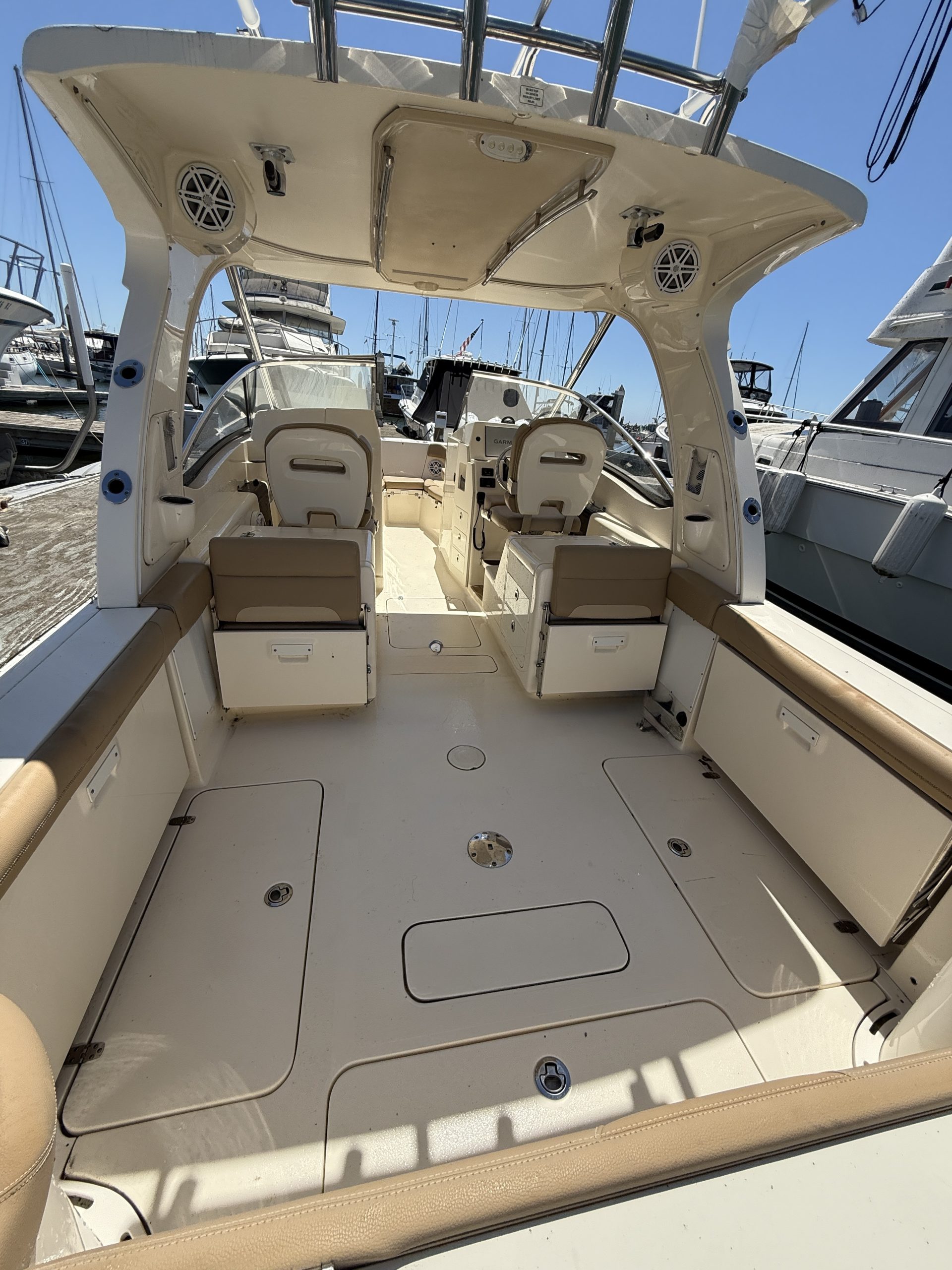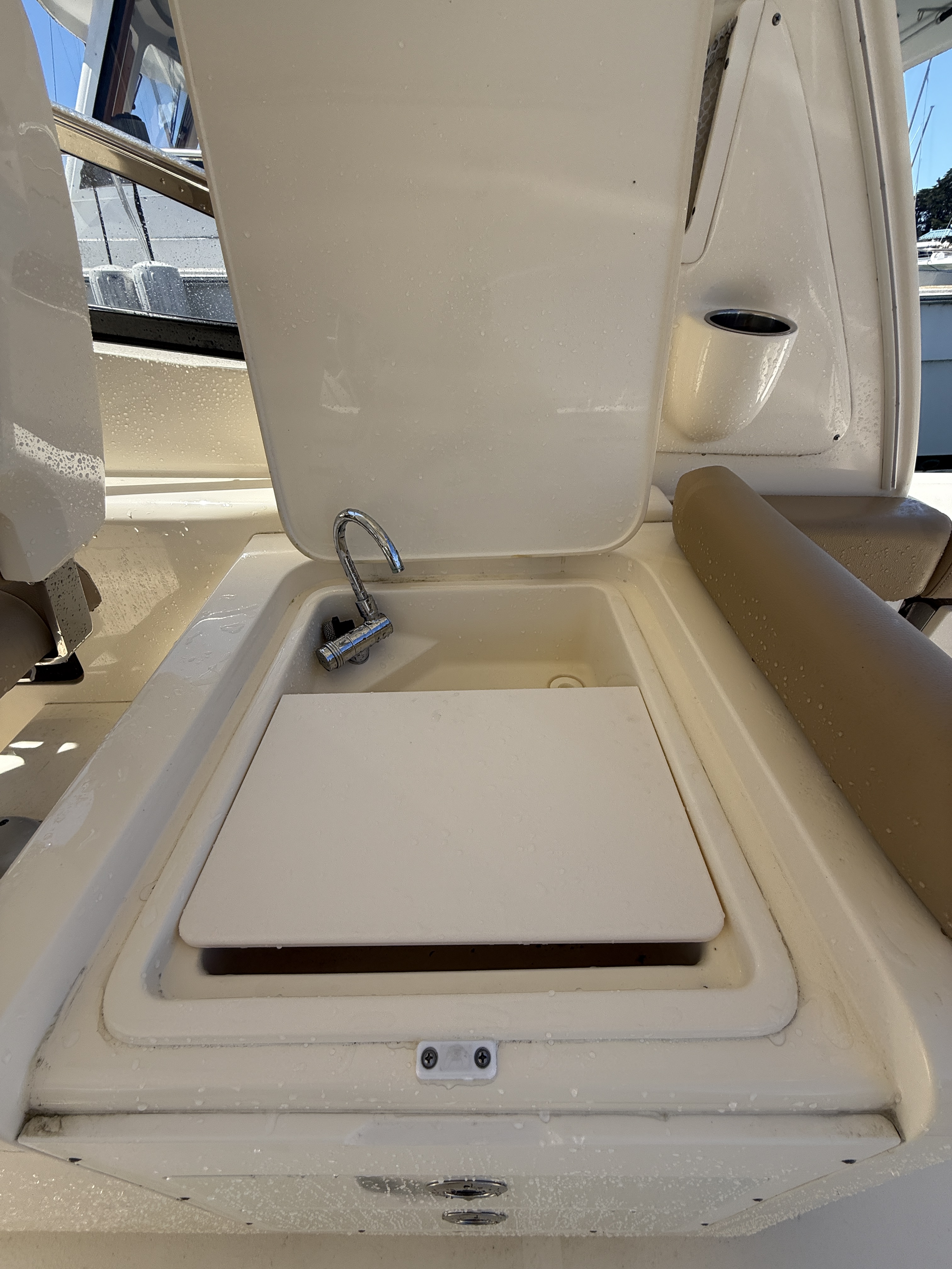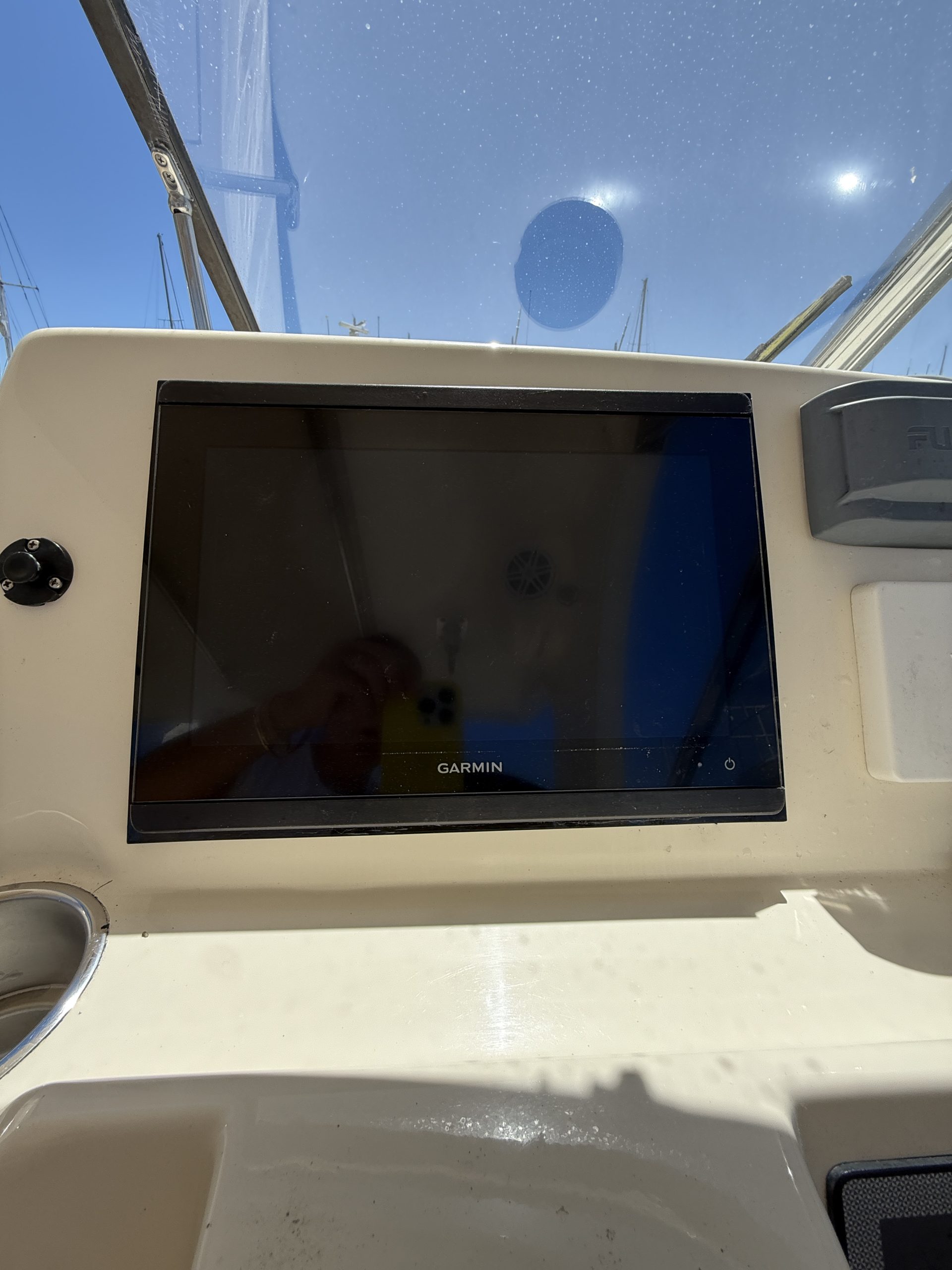 Ready for cruising, fishing, and all watersport activities. Numerous lounging options, telescopic swim ladder, custom fiberglass hardtop, and outstanding fishing features make this a versatile, family-friendly vessel. Multiple aftermarket upgrades include Garmin radar, fishing rod rocket launcher, and custom removable center bow cushion for maximum lounging. Other features: Bluetooth stereo with JL Audio upgrade, electric head upgrade, 152-quart cooler, cockpit sink, LED underwater and cockpit lighting, fold-away stern seat, in-floor fish boxes with pump, rod holders, outriggers, tackle drawers, nine-gallon waste tank, 14-gallon freshwater tank, and 25-gallon bait well. Boat has been drydocked and shrink-wrapped annually, and all required and recommended service/maintenance completed (all records available). Bow and cockpit cover, lines, fenders, life preservers included.