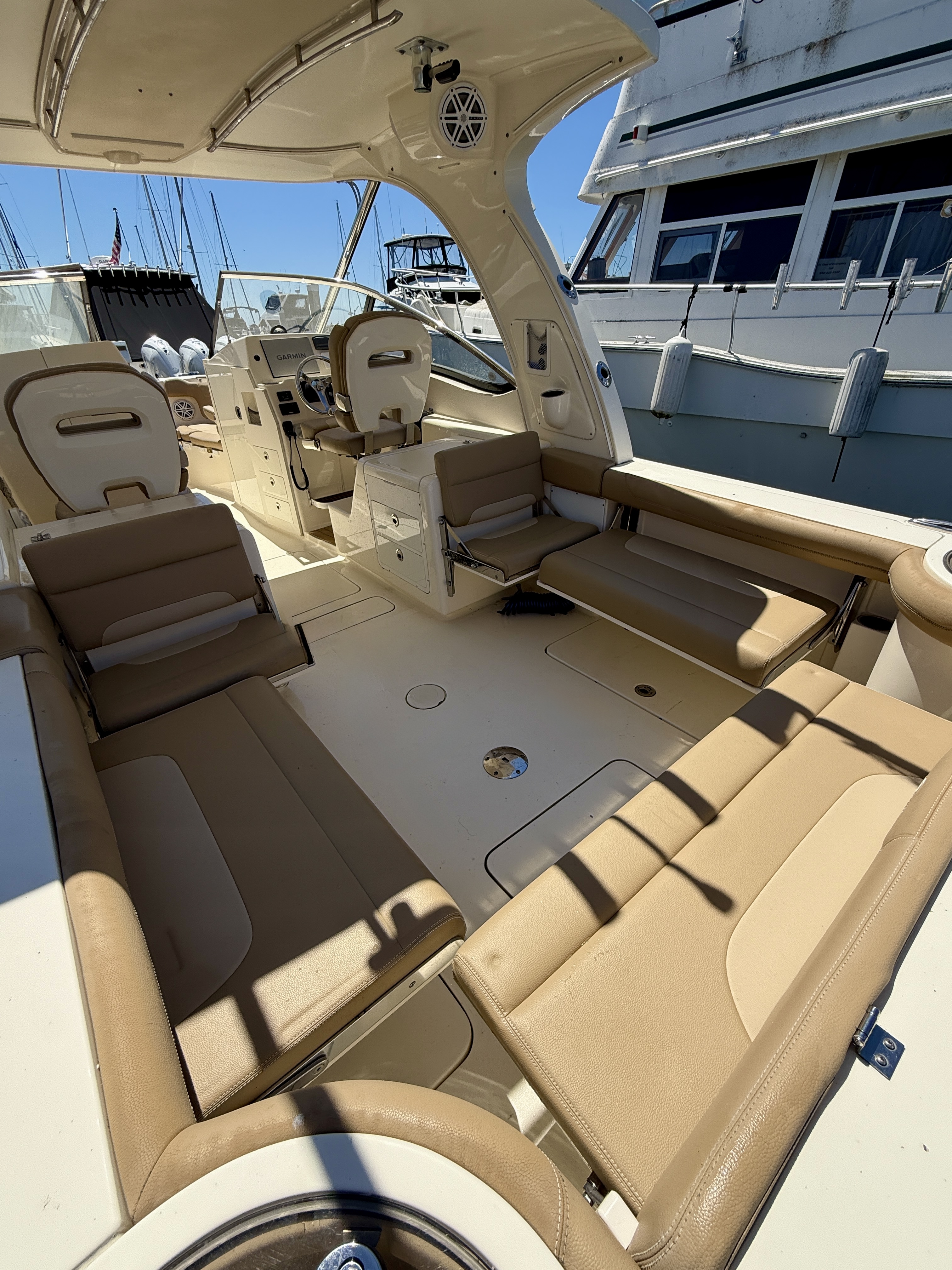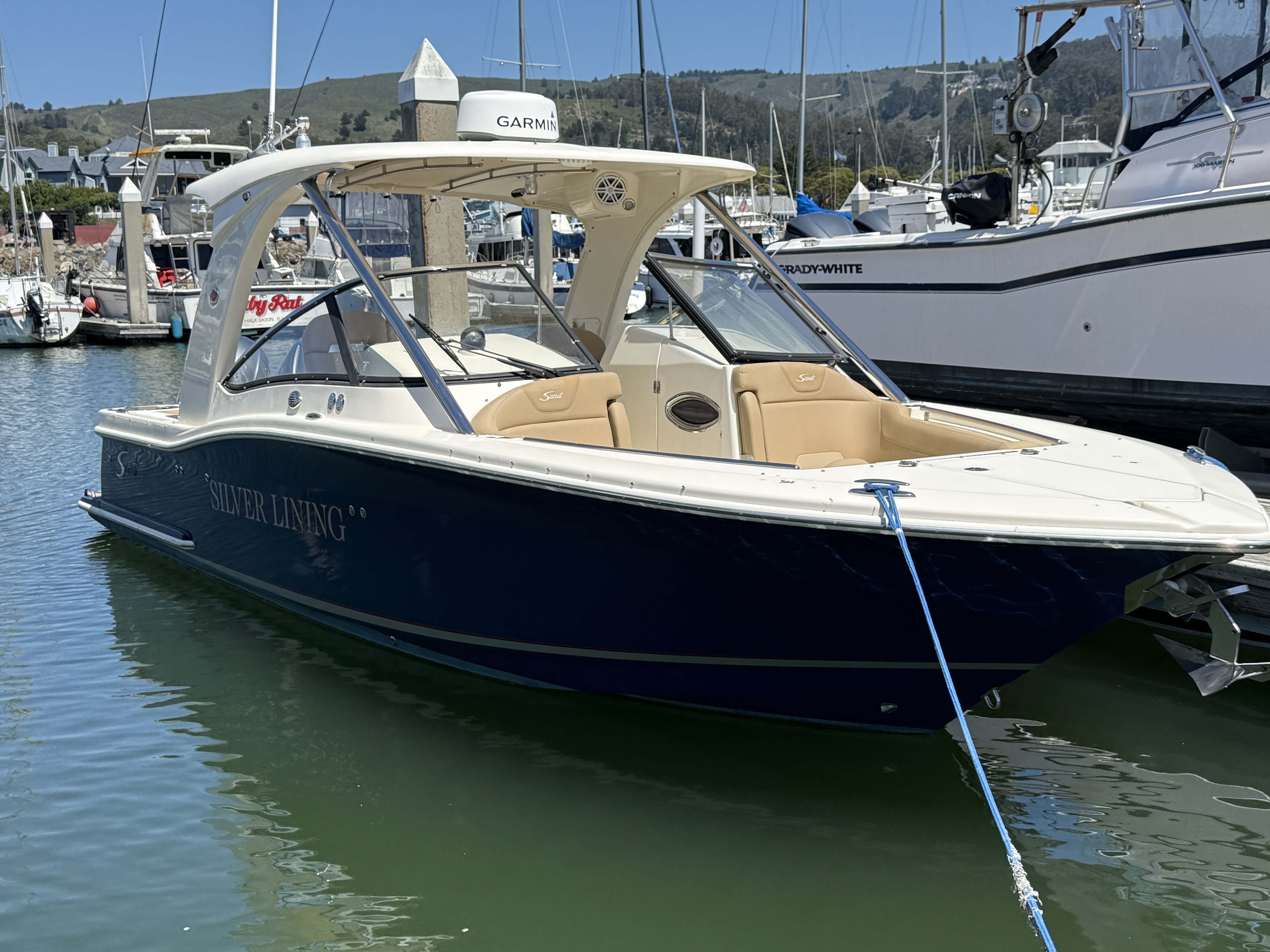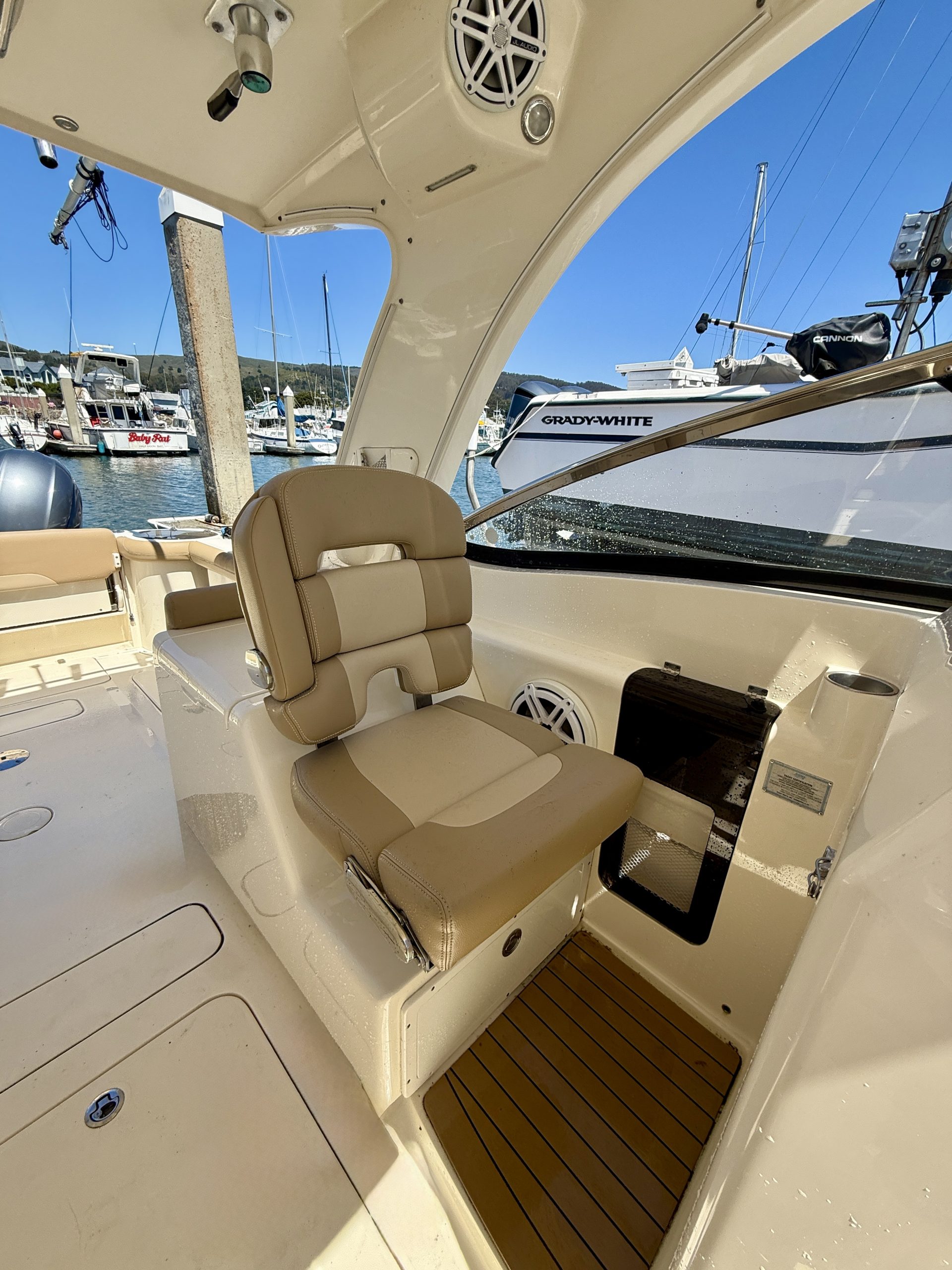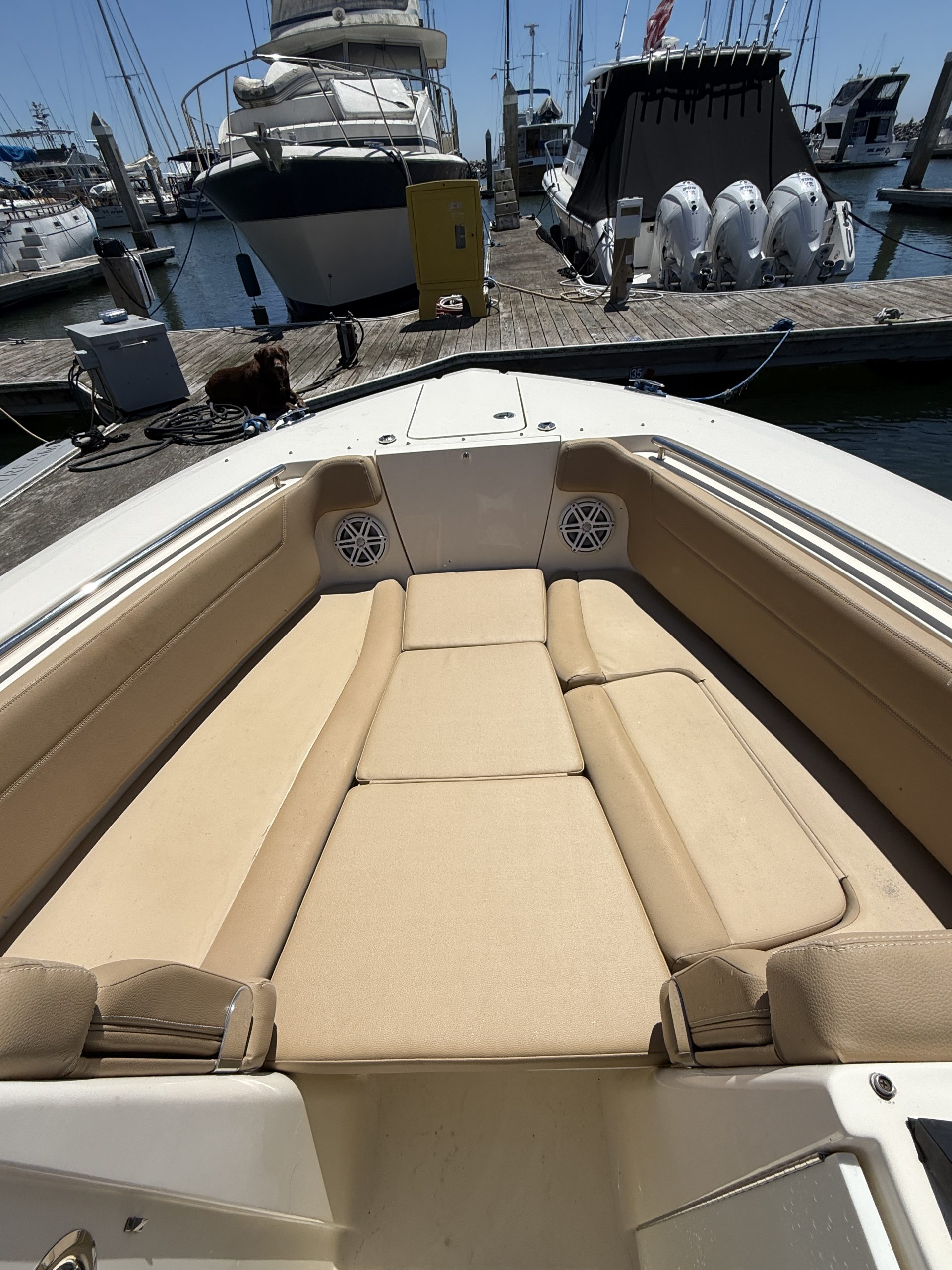 Ready for cruising, fishing, and all watersport activities. Numerous lounging options, telescopic swim ladder, custom fiberglass hardtop, and outstanding fishing features make this a versatile, family-friendly vessel. Multiple aftermarket upgrades include Garmin radar, fishing rod rocket launcher, and custom removable center bow cushion for maximum lounging. Other features: Bluetooth stereo with JL Audio upgrade, electric head upgrade, 152-quart cooler, cockpit sink, LED underwater and cockpit lighting, fold-away stern seat, in-floor fish boxes with pump, rod holders, outriggers, tackle drawers, nine-gallon waste tank, 14-gallon freshwater tank, and 25-gallon bait well. Boat has been drydocked and shrink-wrapped annually, and all required and recommended service/maintenance completed (all records available). Bow and cockpit cover, lines, fenders, life preservers included.