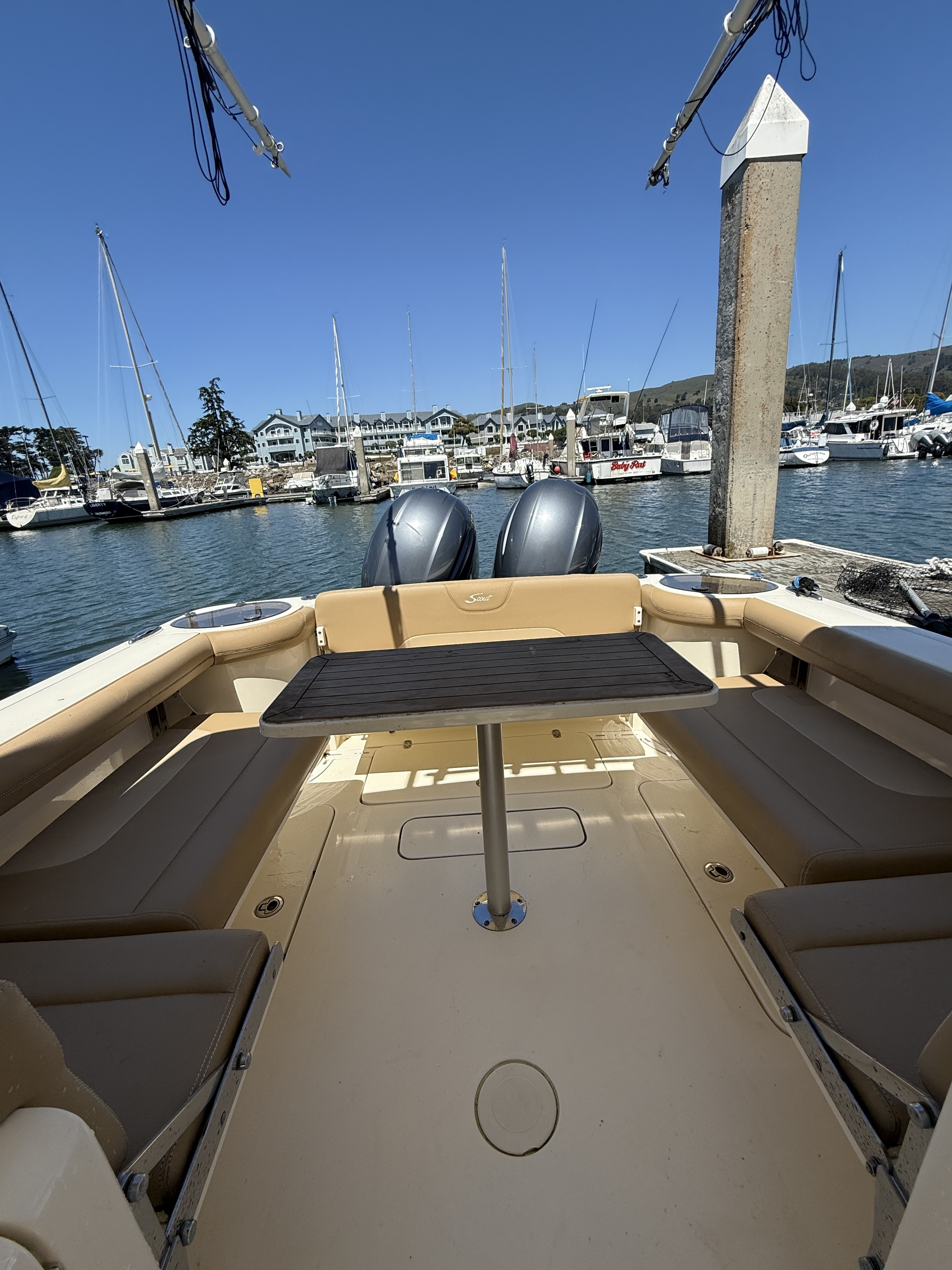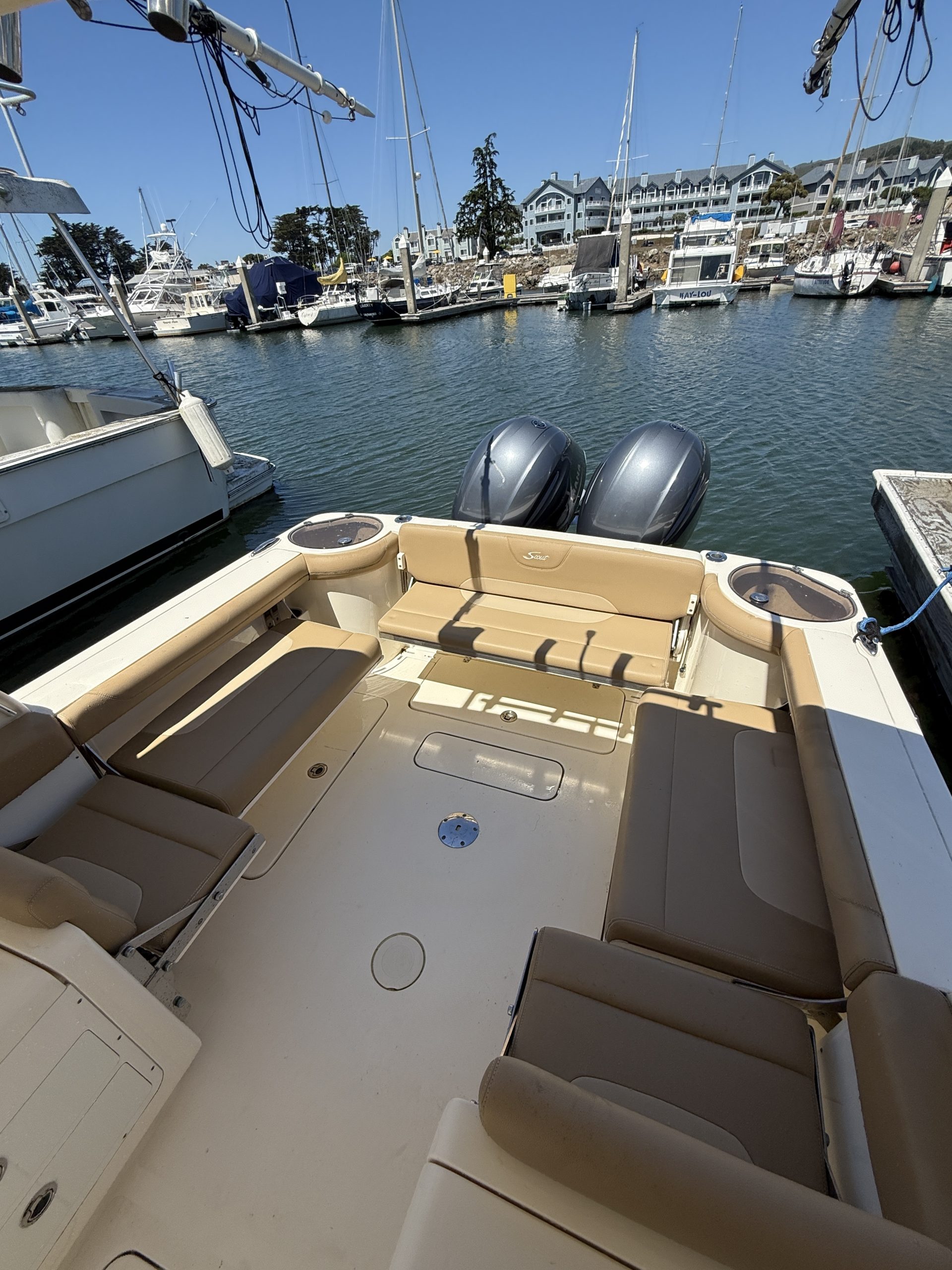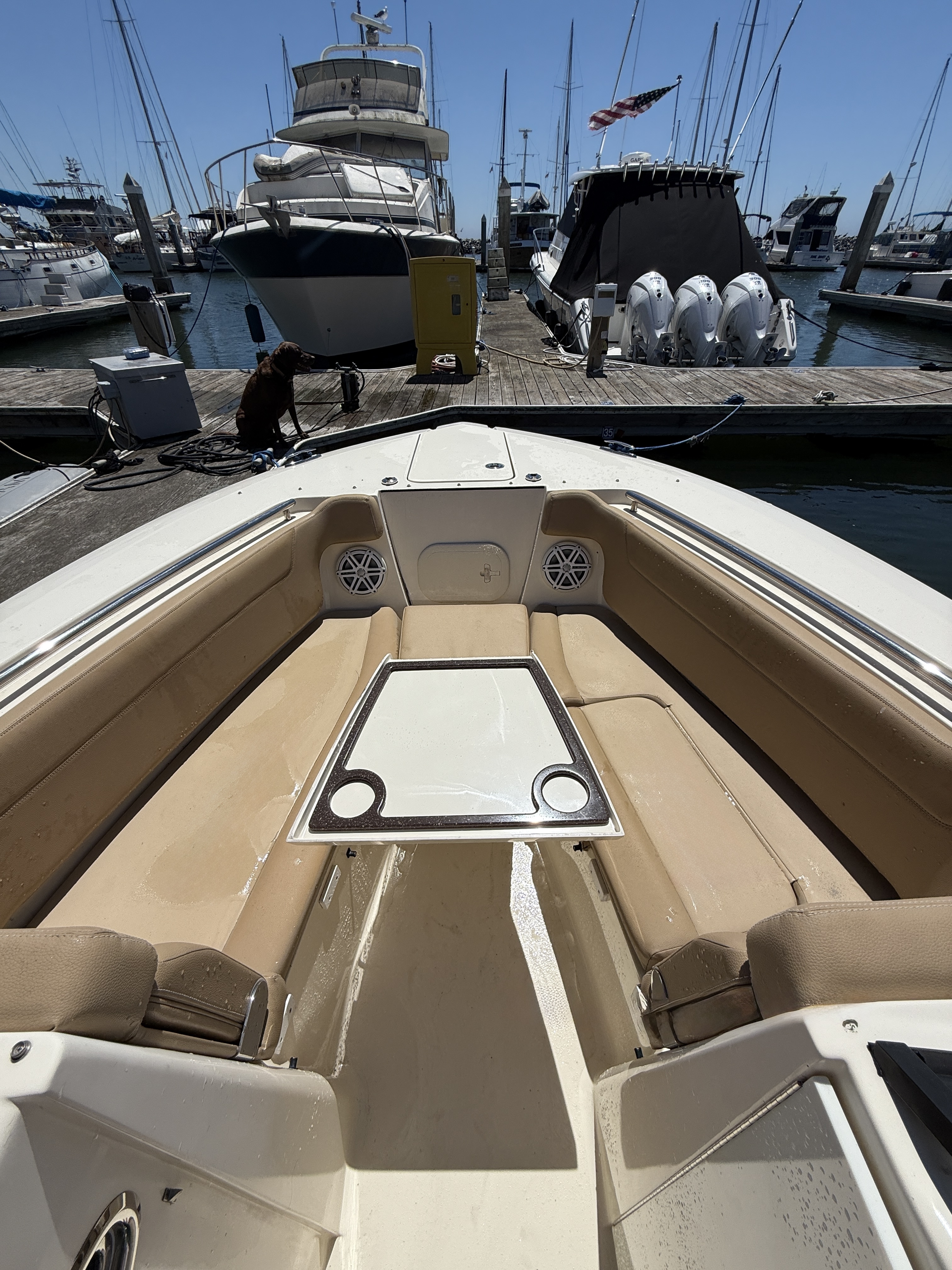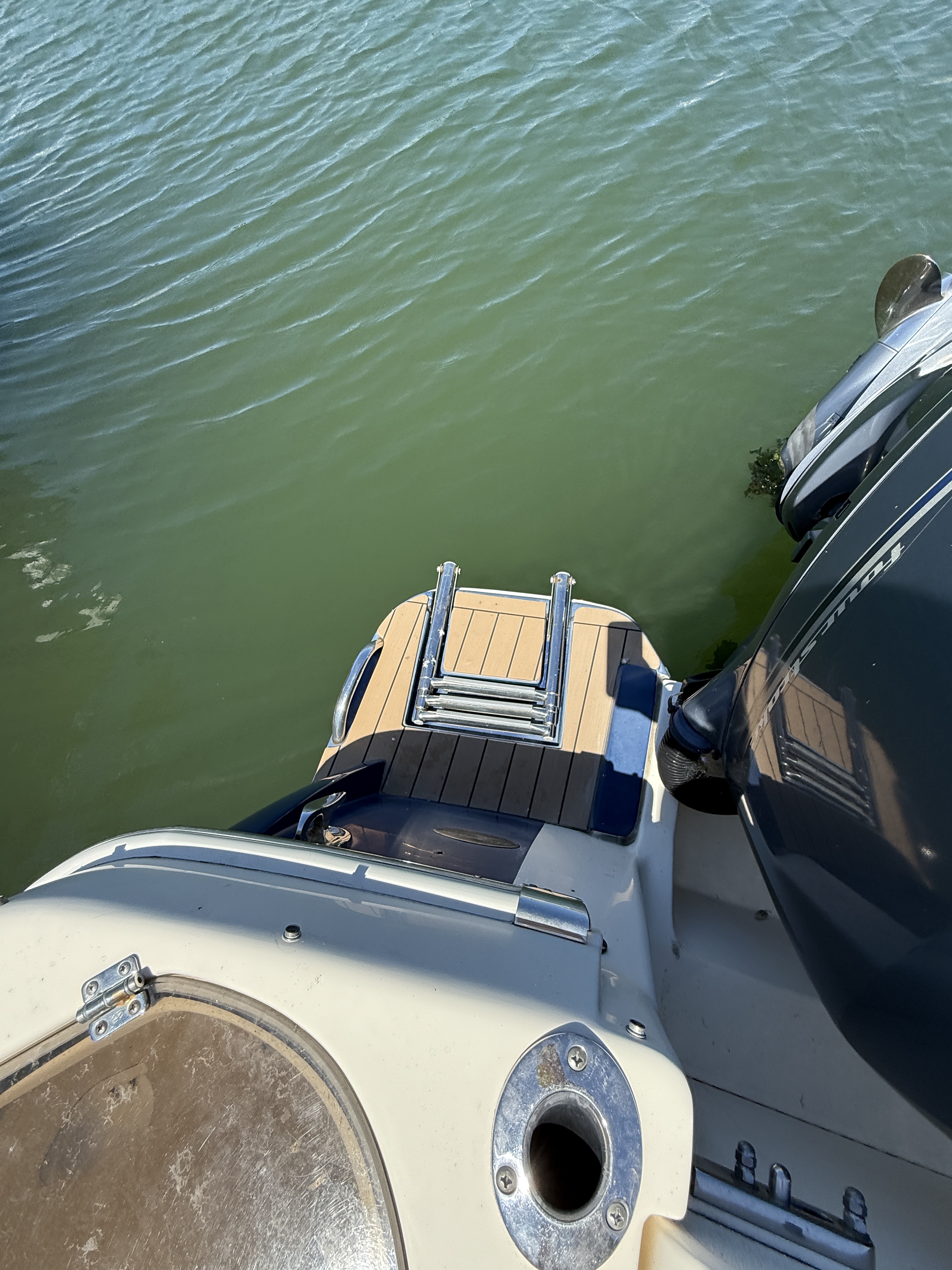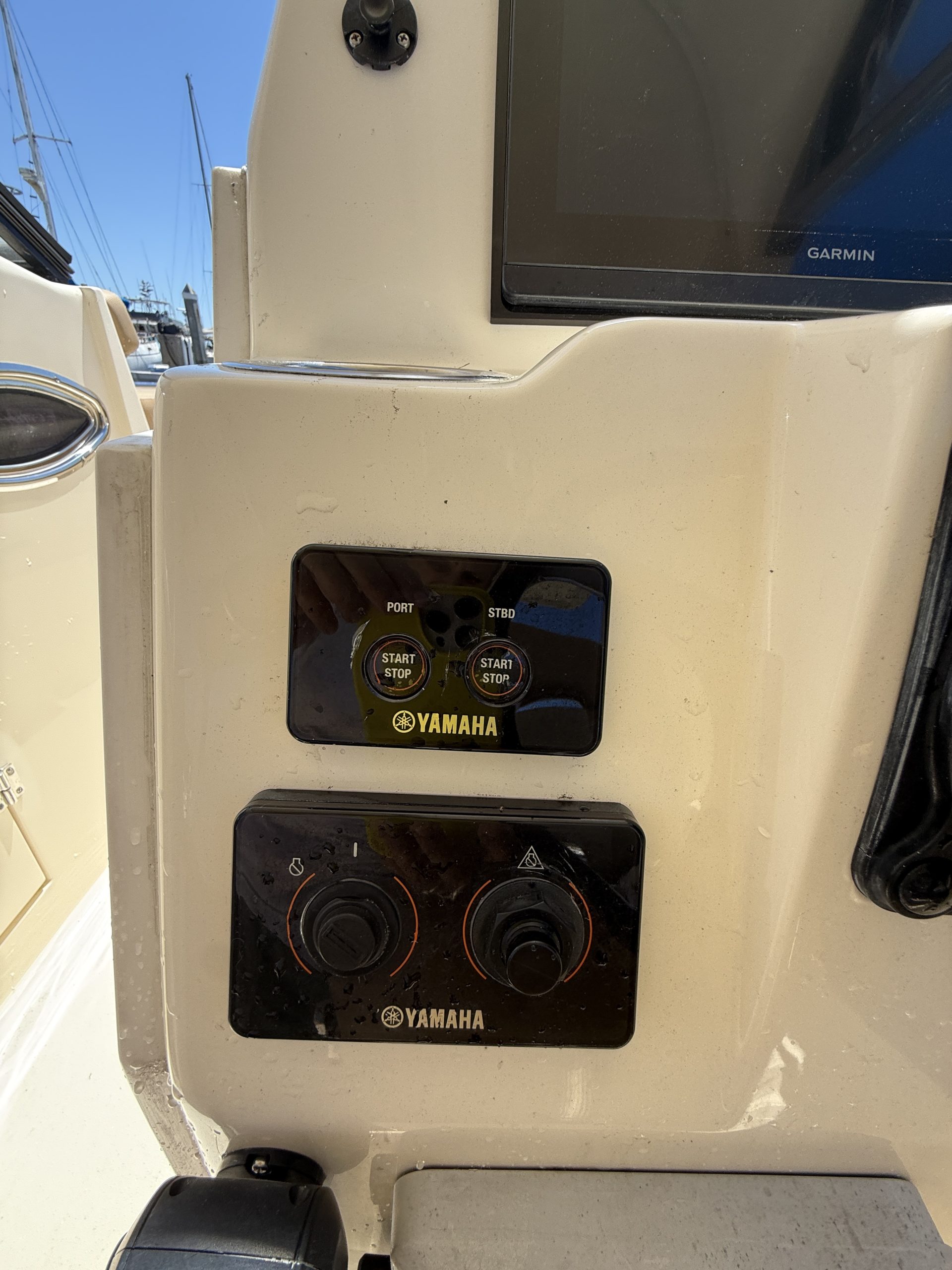 Ready for cruising, fishing, and all watersport activities. Numerous lounging options, telescopic swim ladder, custom fiberglass hardtop, and outstanding fishing features make this a versatile, family-friendly vessel. Multiple aftermarket upgrades include Garmin radar, fishing rod rocket launcher, and custom removable center bow cushion for maximum lounging. Other features: Bluetooth stereo with JL Audio upgrade, electric head upgrade, 152-quart cooler, cockpit sink, LED underwater and cockpit lighting, fold-away stern seat, in-floor fish boxes with pump, rod holders, outriggers, tackle drawers, nine-gallon waste tank, 14-gallon freshwater tank, and 25-gallon bait well. Boat has been drydocked and shrink-wrapped annually, and all required and recommended service/maintenance completed (all records available). Bow and cockpit cover, lines, fenders, life preservers included.