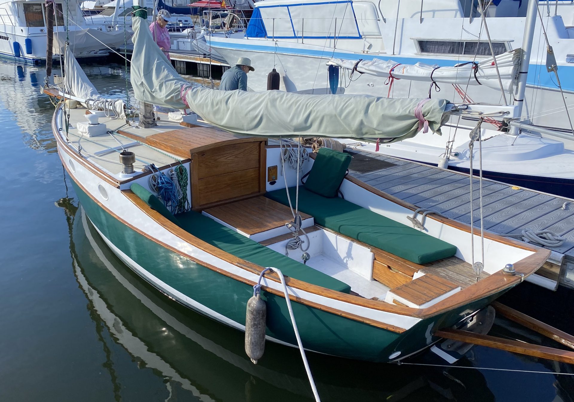 With road trailer. 1931 Crocker design crafted in Massachusetts by Edey & Duff in modern Airex-cored fiberglass hull, with 2,000 pounds encapsulated lead ballast full keel. Betamarine 14 diesel, 220 hrs. Very good tanbark sails with wishbone staysail, and furler genoa. New V-berth and cockpit cushions. In the water in San Diego in very good sailaway condition. Strong, beautiful boat that sails like a dream. Please email.