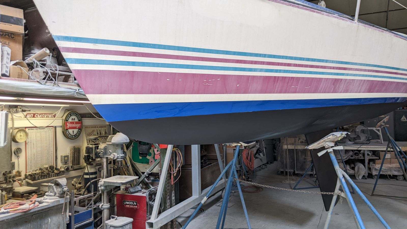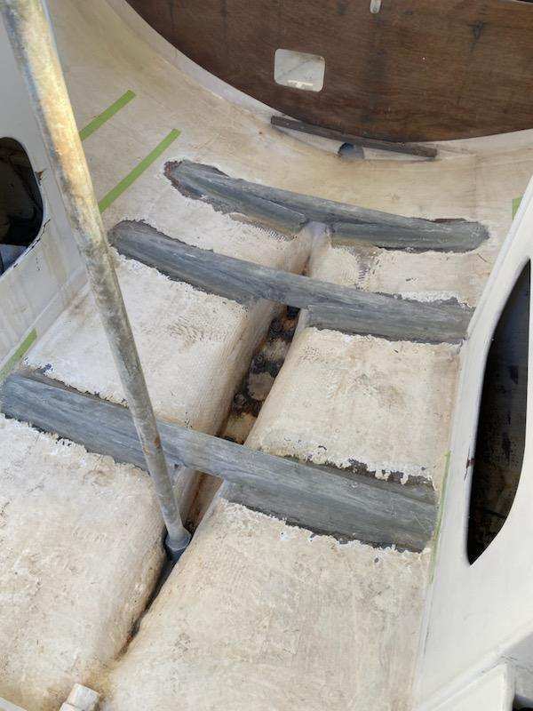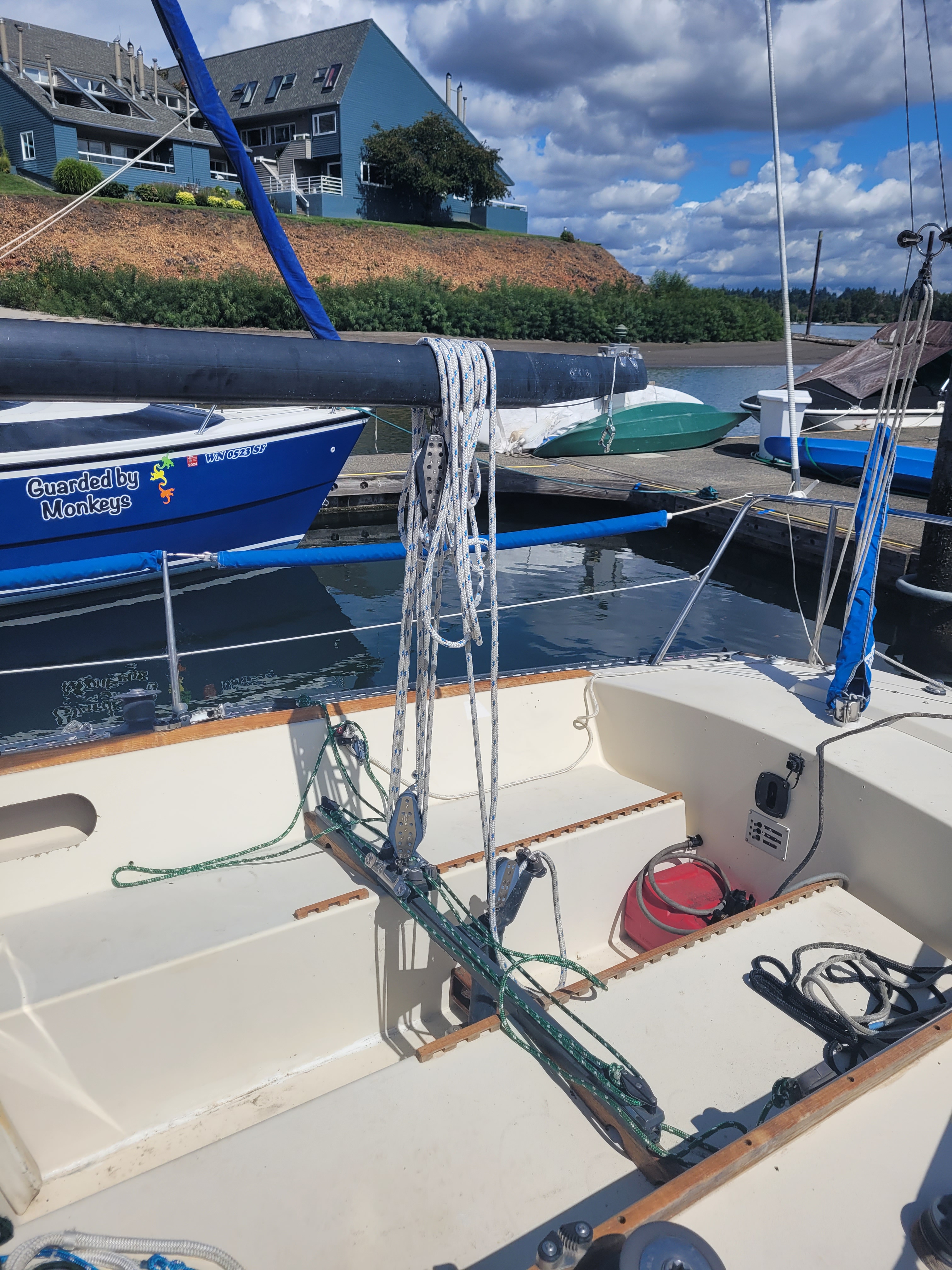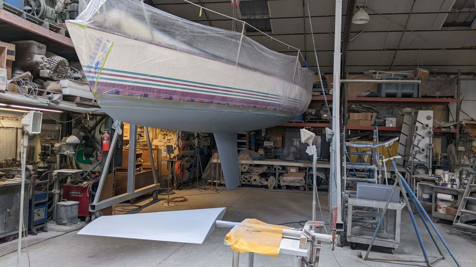 Late model. Includes custom dual-axle trailer and very recent Ballenger double-spreader mast with corresponding rod rigging. Last 20 years in Portland (freshwater). Rigging, stanchions/lifelines, running rigging, winches in excellent condition. Boat has been thoroughly/completely gone through at well-known Elkhorn Composites: A. All three ribs at mast foot replaced with composite elements (boat has substantial jockstrap). B. Three small soft spots in the deck/cockpit replaced w/composite core/gelcoat. C. Bottom and keel completely stripped to the gelcoat and keel fiberglassed as necessary. D. Keel bolts torqued/updated. E. New lifting rod threaded end. F. Several coats barrier, two of Pro-Line antifoul (59% Cu). Mucho $$. Not splashed yet. Two good race mains, spinnakers, older jibs.