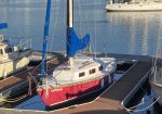 Aka Roue’ 20. LOD 30 ft, LWL 21 ft, Beam 8 ft, Draft 4.5 ft. Displacement 4700 lbs. Designed in the ‘20s, built in the ‘80s in Nova Scotia of quality Canadian fiberglass, ‘Ramona’ is 30 feet on deck with elegant overhang that guarantees compliments every time she sails. The original “gentleman’s (or gentlewoman’s) daysailer,” ‘Ramona’ has everything you need, and nothing you don’t, for a memorable day on the Bay. Dependable two-cylinder Yanmar diesel (recent List Marine service), crisp Pineapple sails, new standing rigging (including top-of-mast sheaves), new Harken furler, Dutchman rig, built-in cooler, rollaway head, and a great napping berth. Why sail a motorhome when all you really need is a sports car?