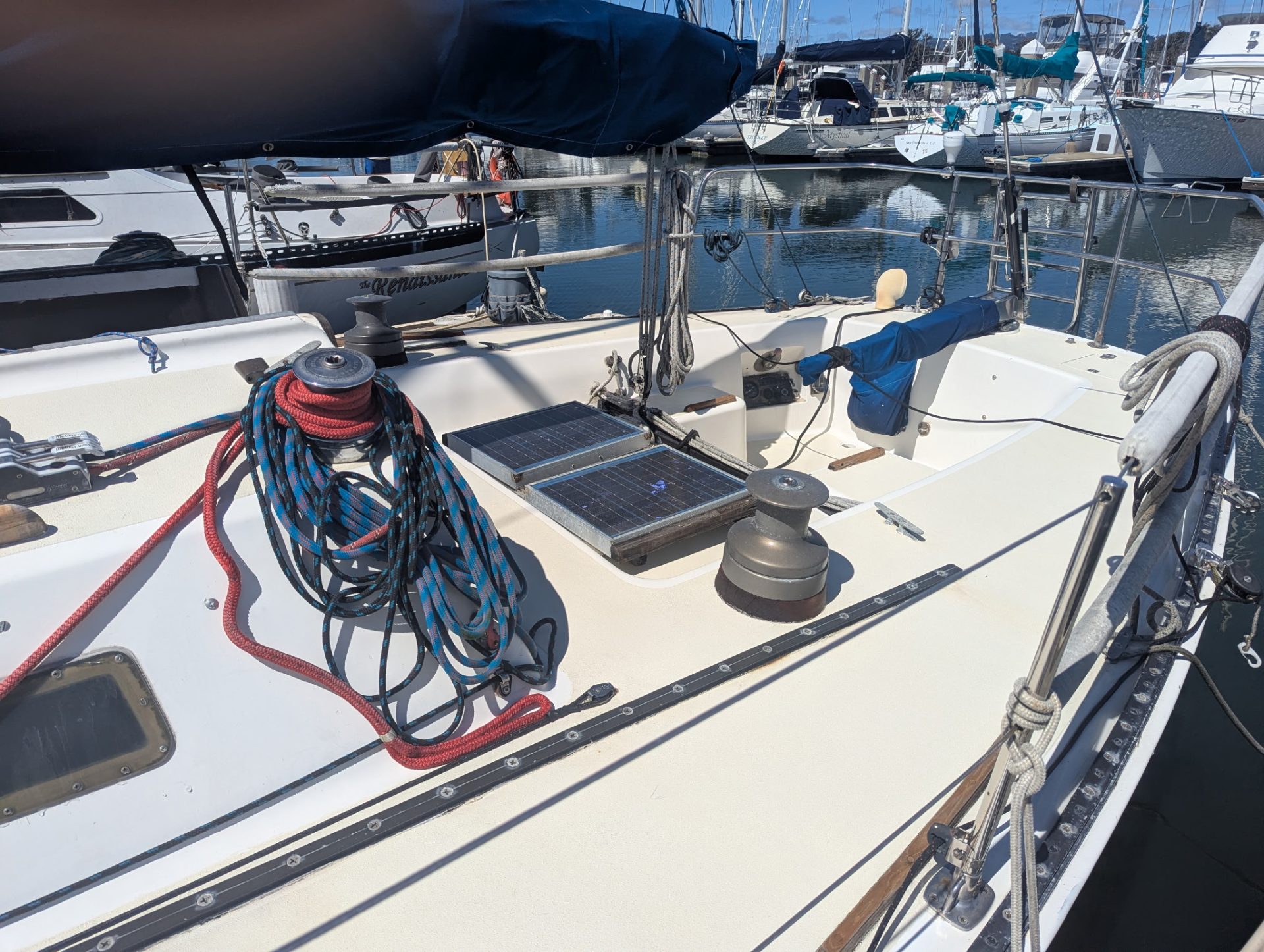 Pacific Cup/Hawaii vet, well maintained, newish B&G electronics, batteries, cabin paint, cushions, shaft, motor work, solar charging. Comfortable in light air, breezy S.F. Bay, ocean crossing. Lots of extra gear, sails, anchors, etc. Designed as offshore one-design, great cruiser, listed in Sailboat Hall of Fame. Quick, stiff and safe.