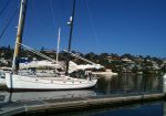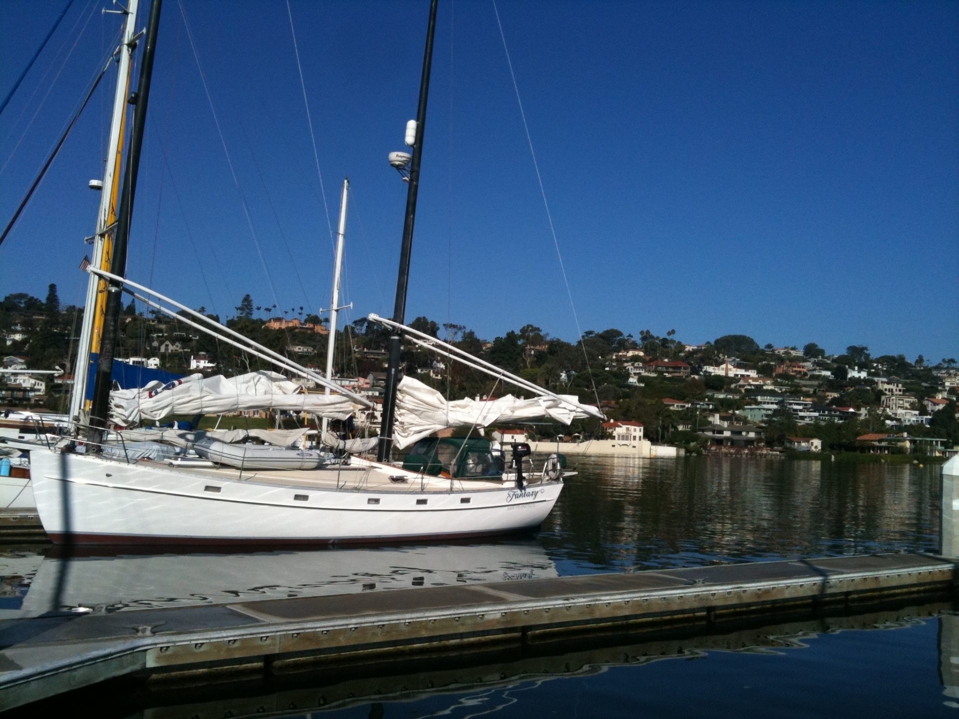 Custom carbon fiber Wylie main mast, no shrouds or standing rigging needed. All teak interior. Perkins diesel, swing keel.