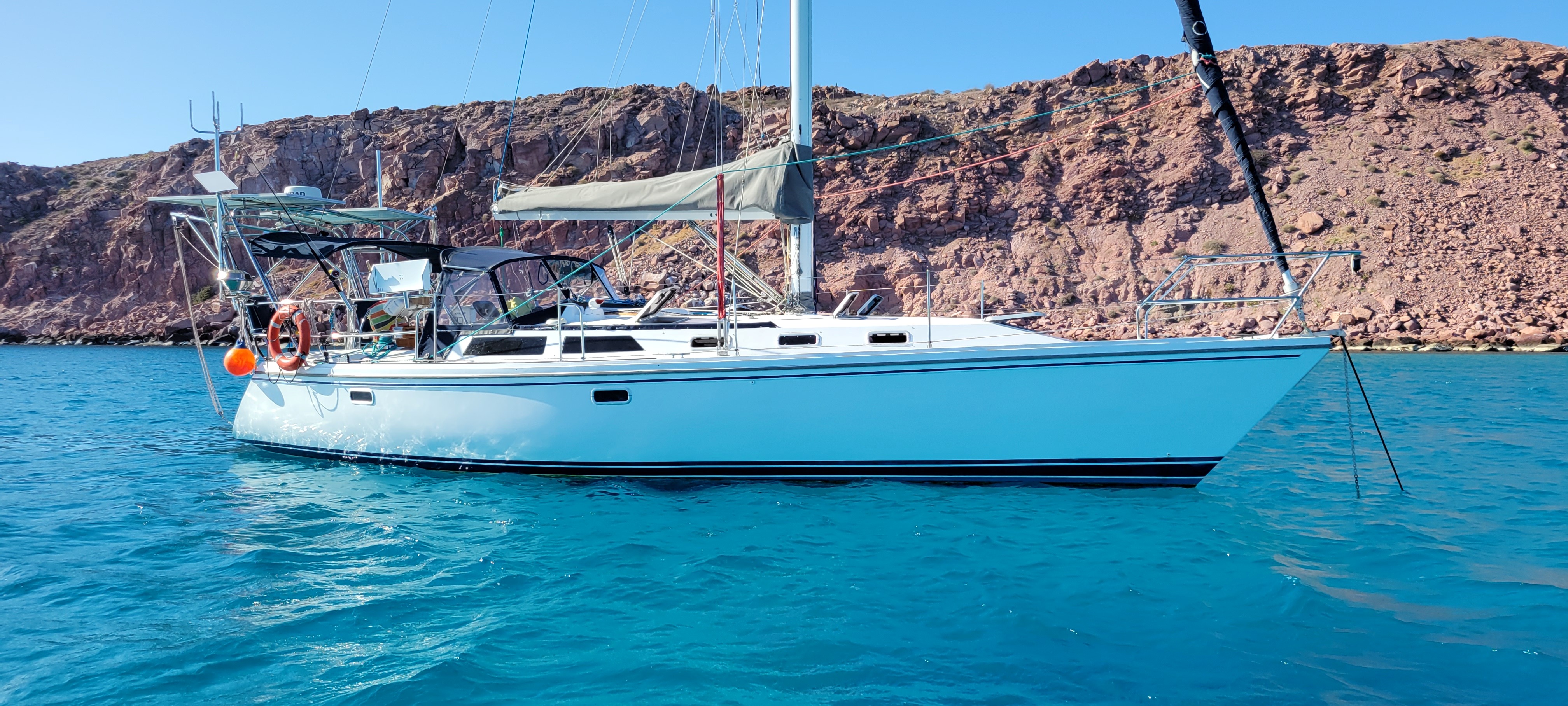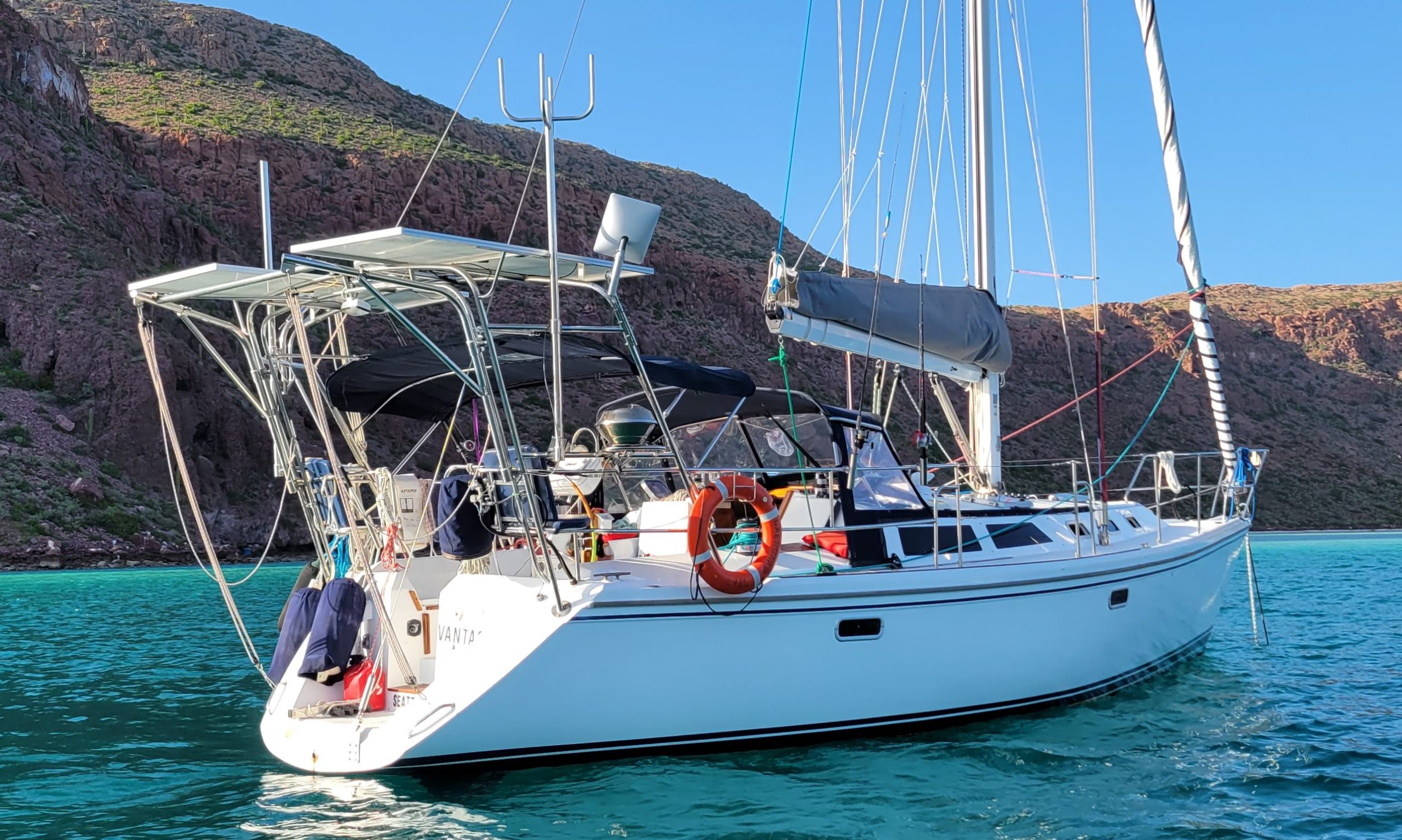 Well maintained fin-keel, 3-cabin model in La Paz for quick island trips or extensive Sea of Cortez cruising. Great family/couples boat. Upgraded electrical, 700W solar, watermaker, B&G plotter, Simrad radar, Raymarine linear autopilot, Starlink, EPIRB, dinghy davits, 2×4-gal propane, etc. New 30-in lifelines, stanchions, rails, pulpits, perch seats in custom arch. Very clean Yanmar 50hp engine; new shaft seal and coupler. Recent survey. Ten-ft aluminum RIB dink and 5hp outboard.