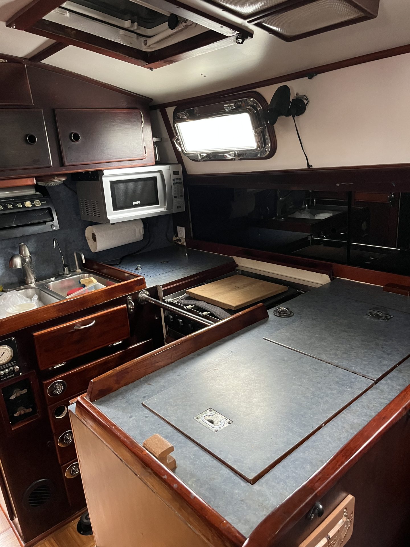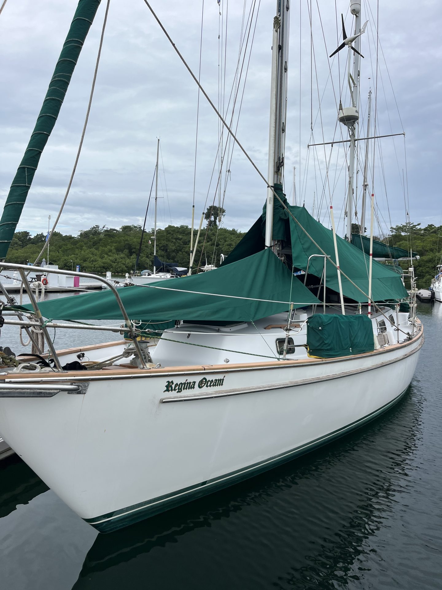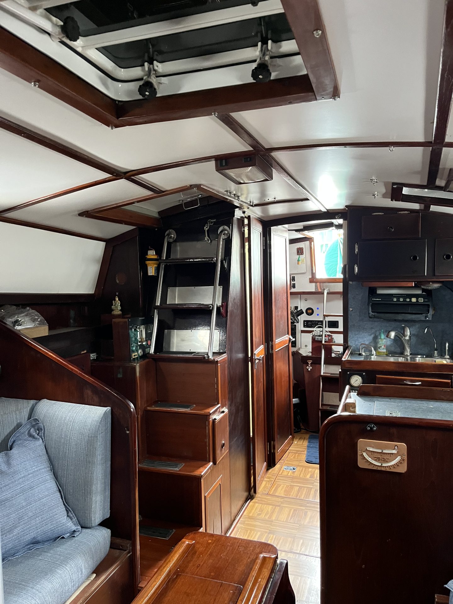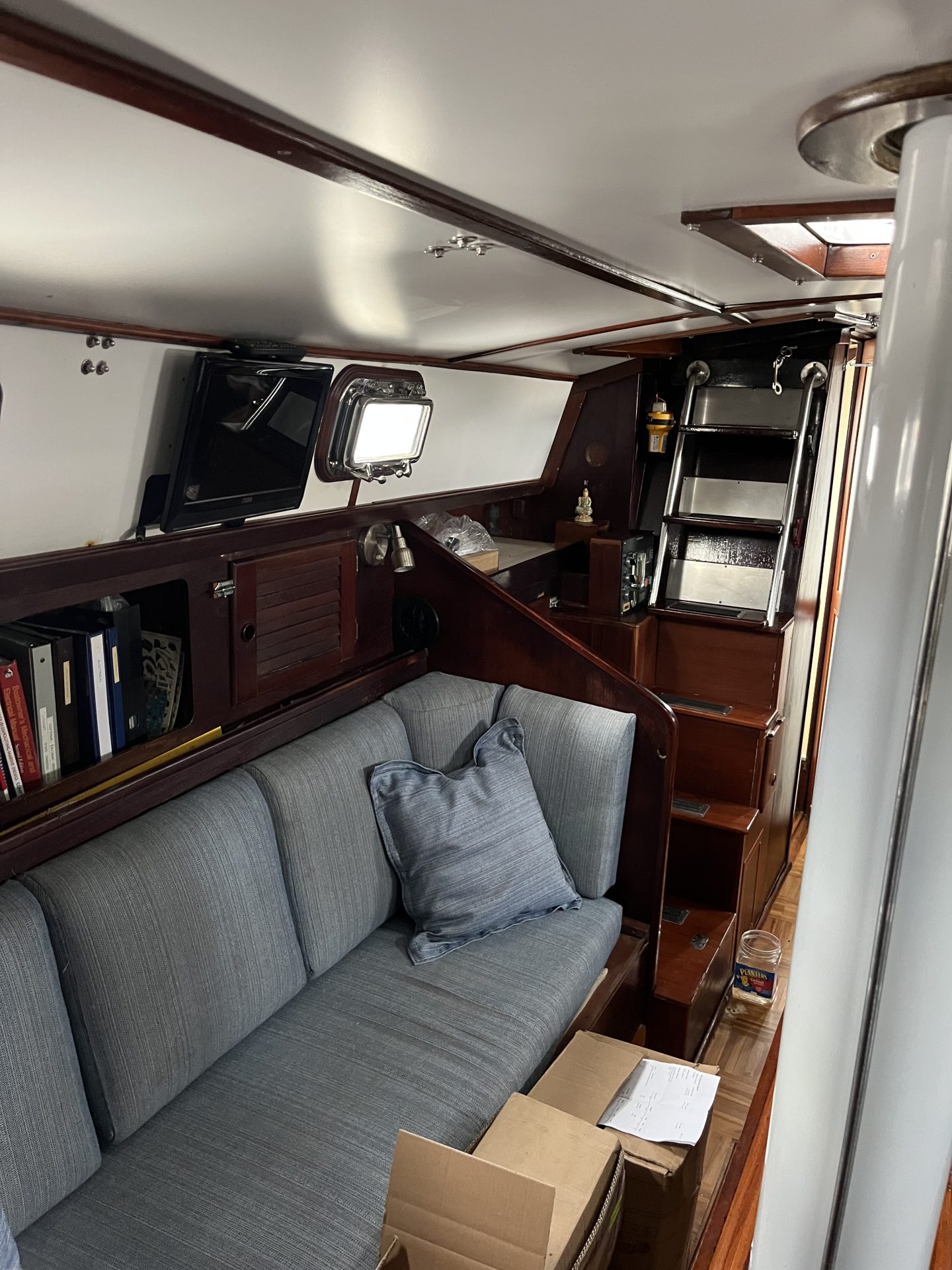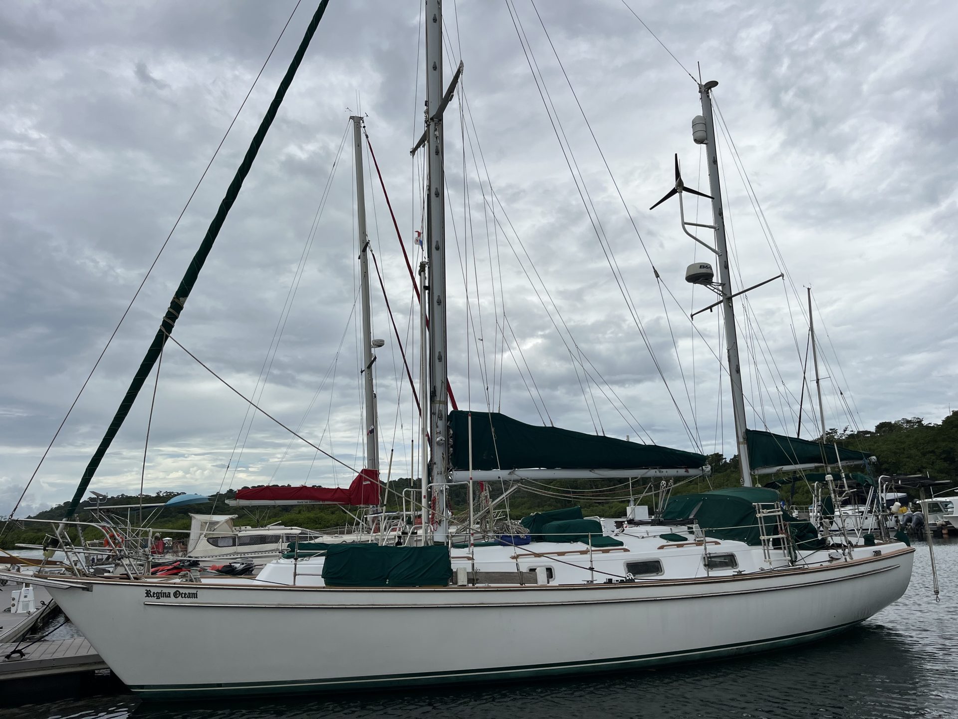 Cruiser-ready. Well-equipped Pearson 424 cruiser with major recent upgrades. Strong, proven bluewater design. Ideal for Caribbean cruising or liveaboard. Recent upgrades: new bifacial solar panel, new Lithionics lithium batteries, new interior upholstery, new full boat cover. AB 9.5 RIB dinghy, outboard included. Low-hr Beta diesel inboard. Dive compressor and generator. Large tanks and storage. Comfortable forward cabin, plus salon and aft quarter berth. Great galley and nav station. Roller furling, strong rig. Tons of spare parts. Needs a little love to start cruising.