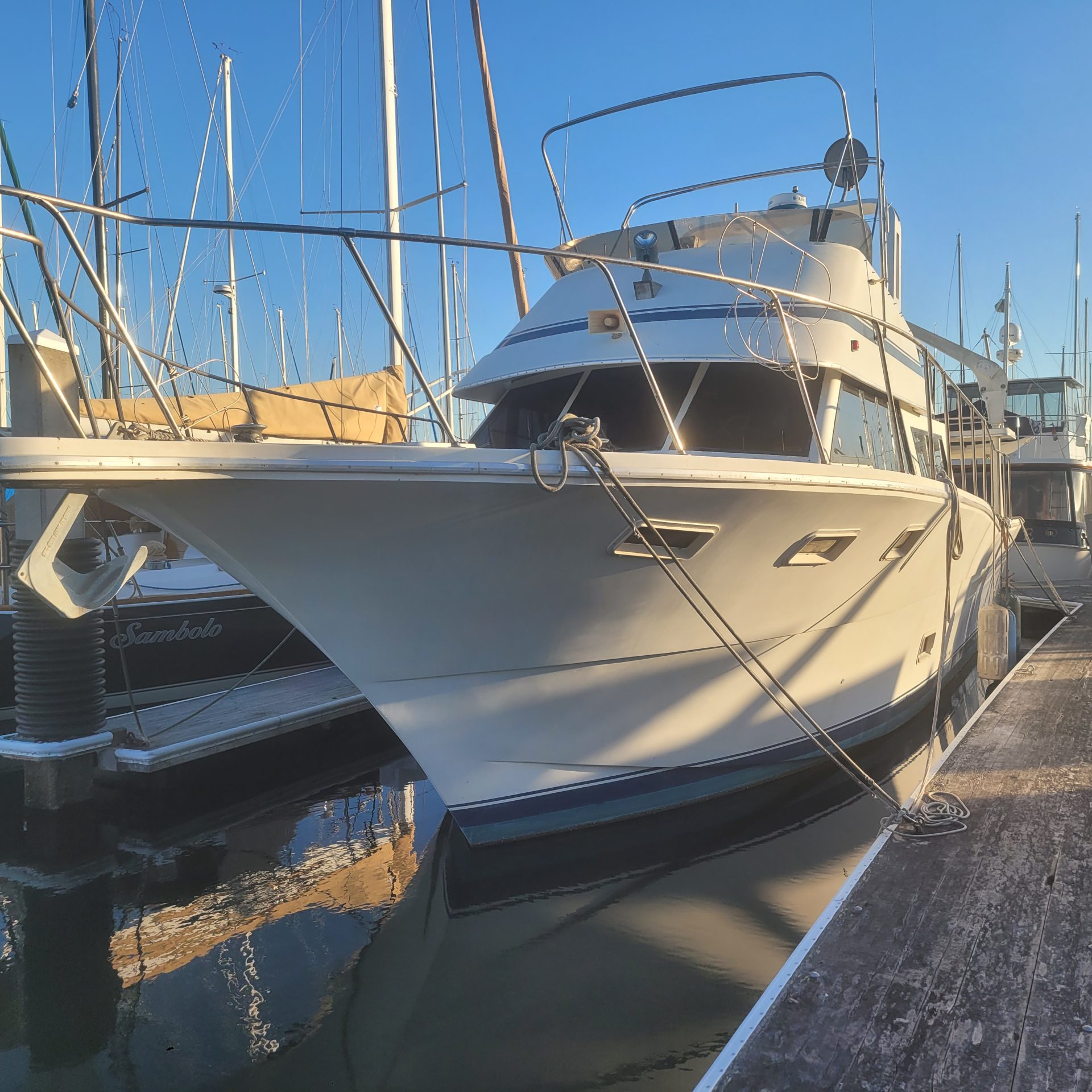 Health forces sale. Beautiful, great liveaboard. Twin Cat diesel 3208T engines with less than 500 hrs each. Both run great, but port engine needs some repair. Upper and lower helms. TLC needed, reflected in price.