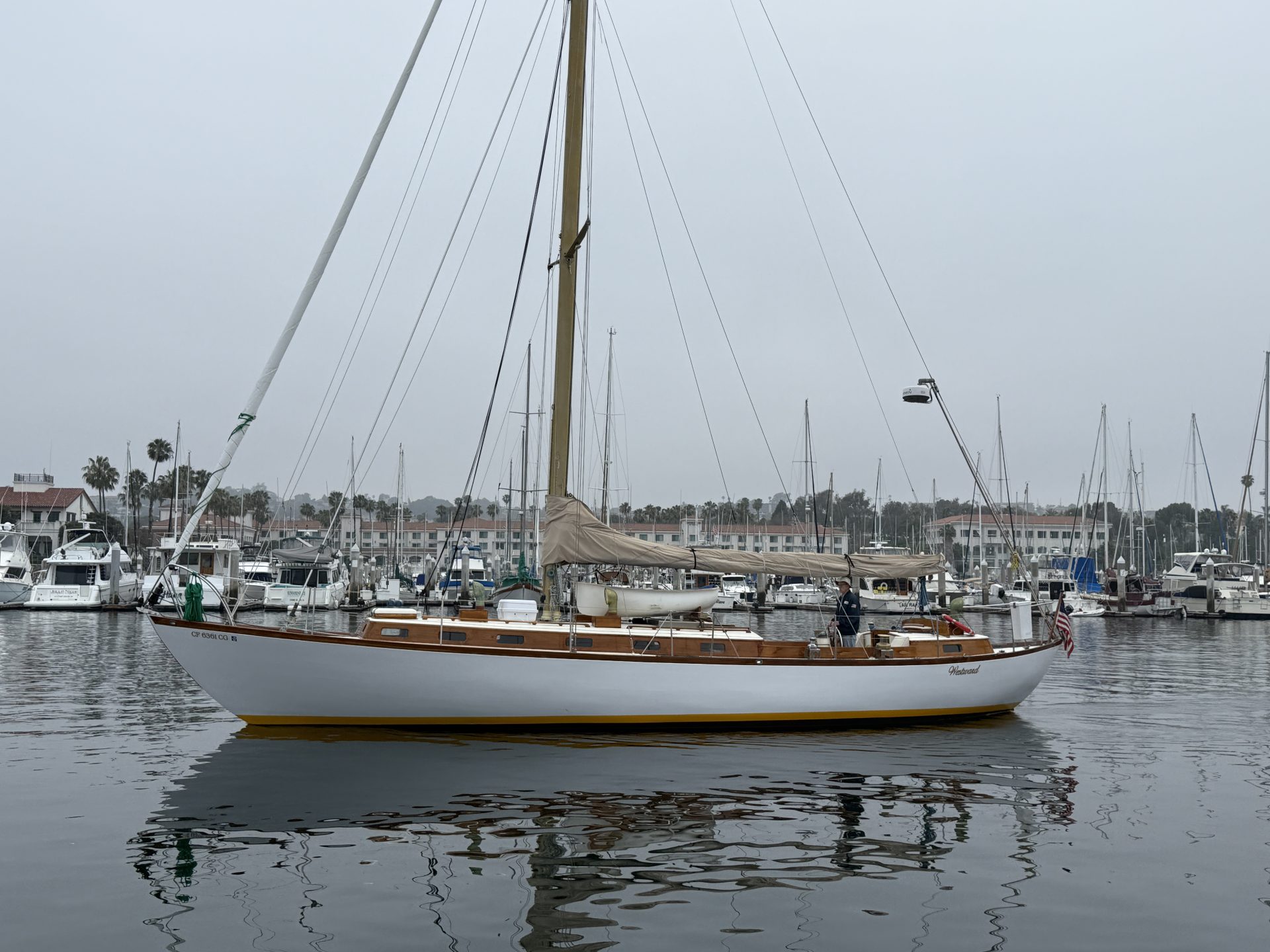 “WESTWARD” is a Southern California classic. Bill Lapworth designed a fast, roomy boat that was light and easily driven. The L-50’s lines are simple and clean with graceful sheer and long waterline. She has very tight bilges and a powerful clean run aft.