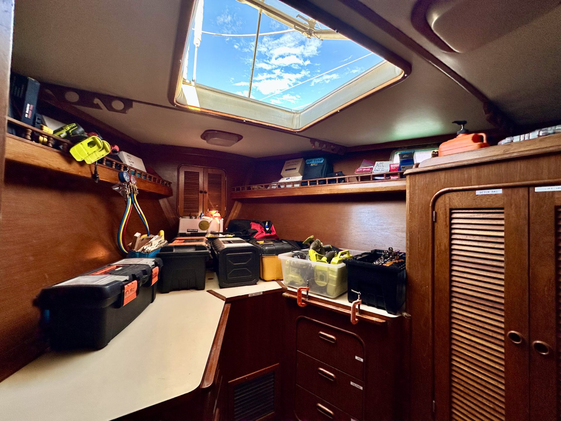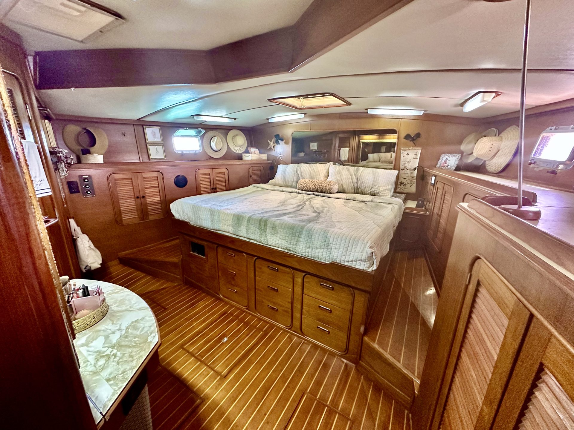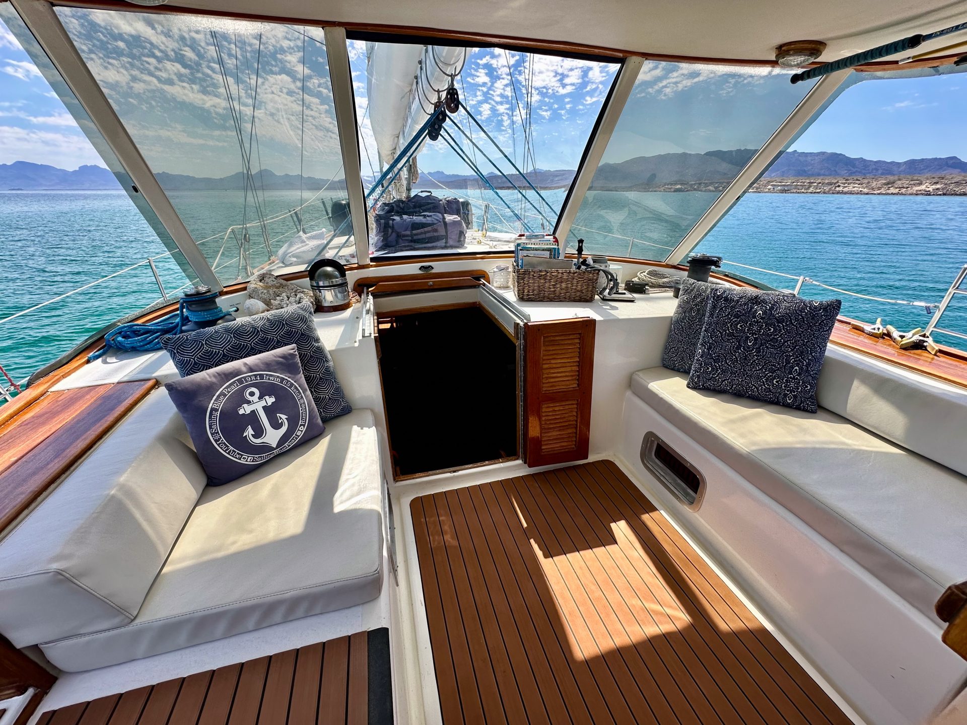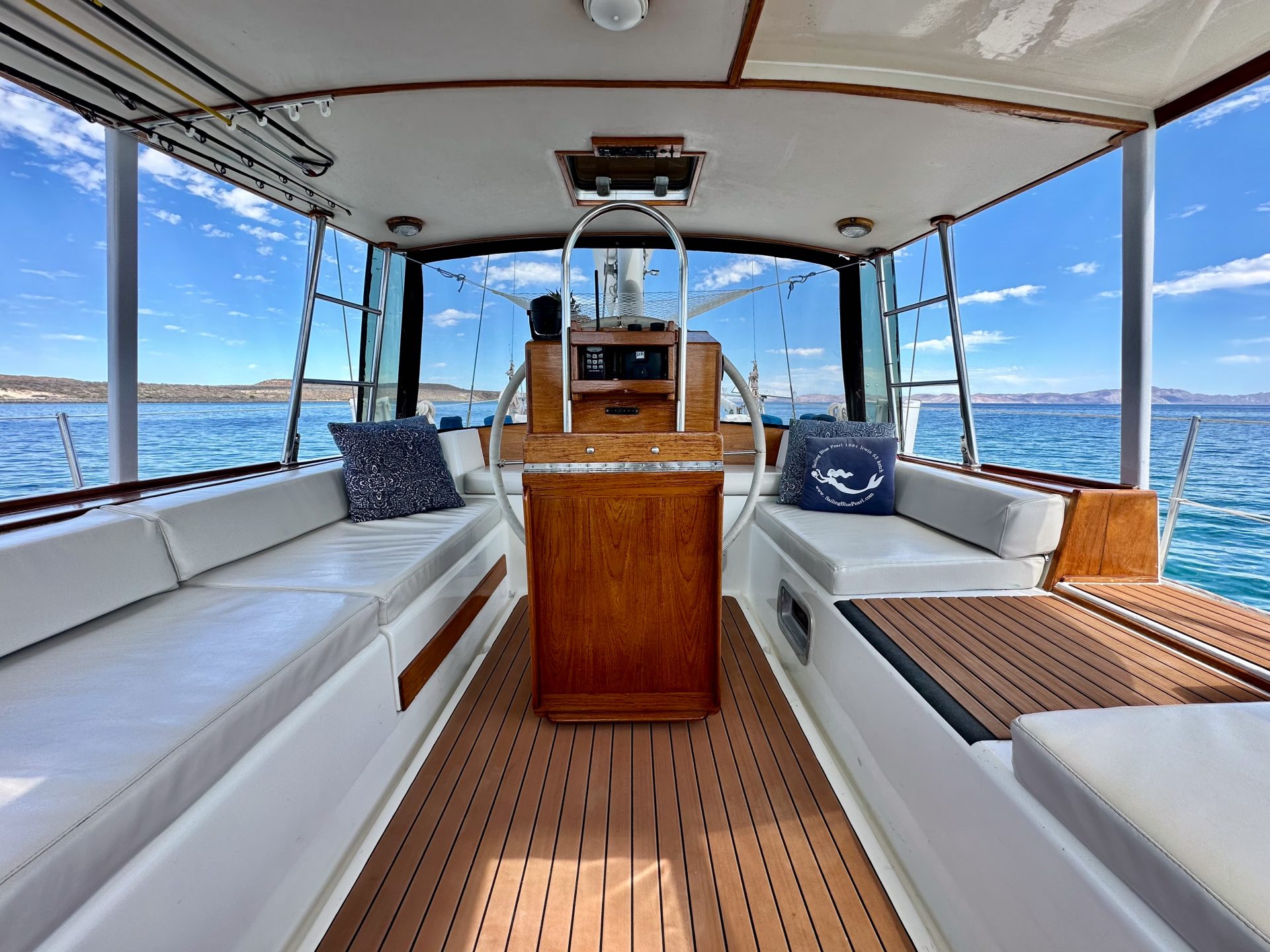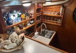 Blue Pearl is a turn-key, fully-equipped head-turning beauty with all the comforts of home. She’s a cutter-rigged ketch, owner’s version with three en-suite cabins, wet bar, crew’s berth and V berth. She sleeps nine comfortably.