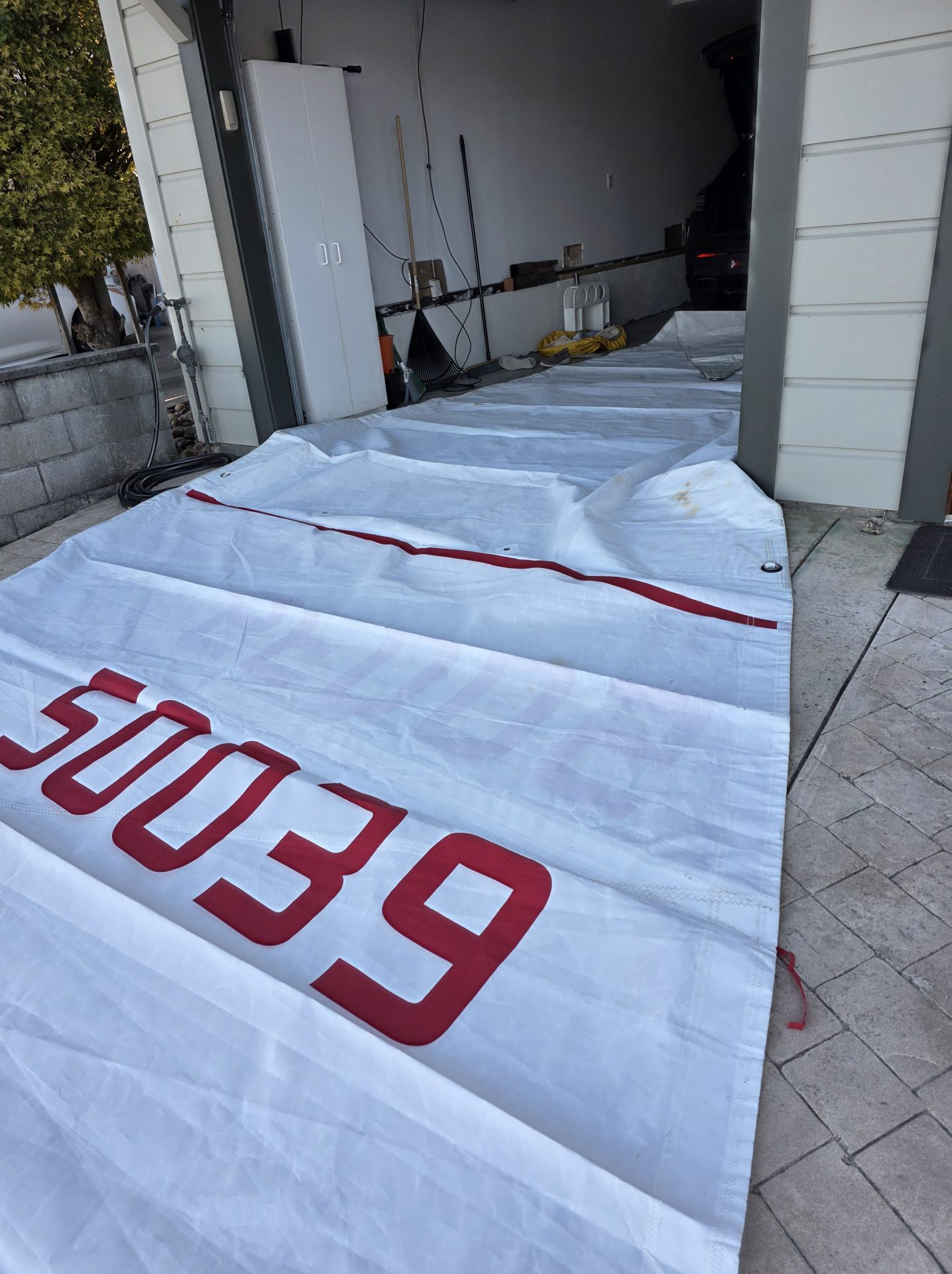 Delivery main from 40′ racing sailboat CM1200 Raven. 3/4″ bolt rope luff 43′. Loose foot 16’9″ Heavy Dacron 8 or 9 oz. 2 reefs plus flattener. Needs battens. Very good condition, virtually bulletproof. Late 1990s era UK.