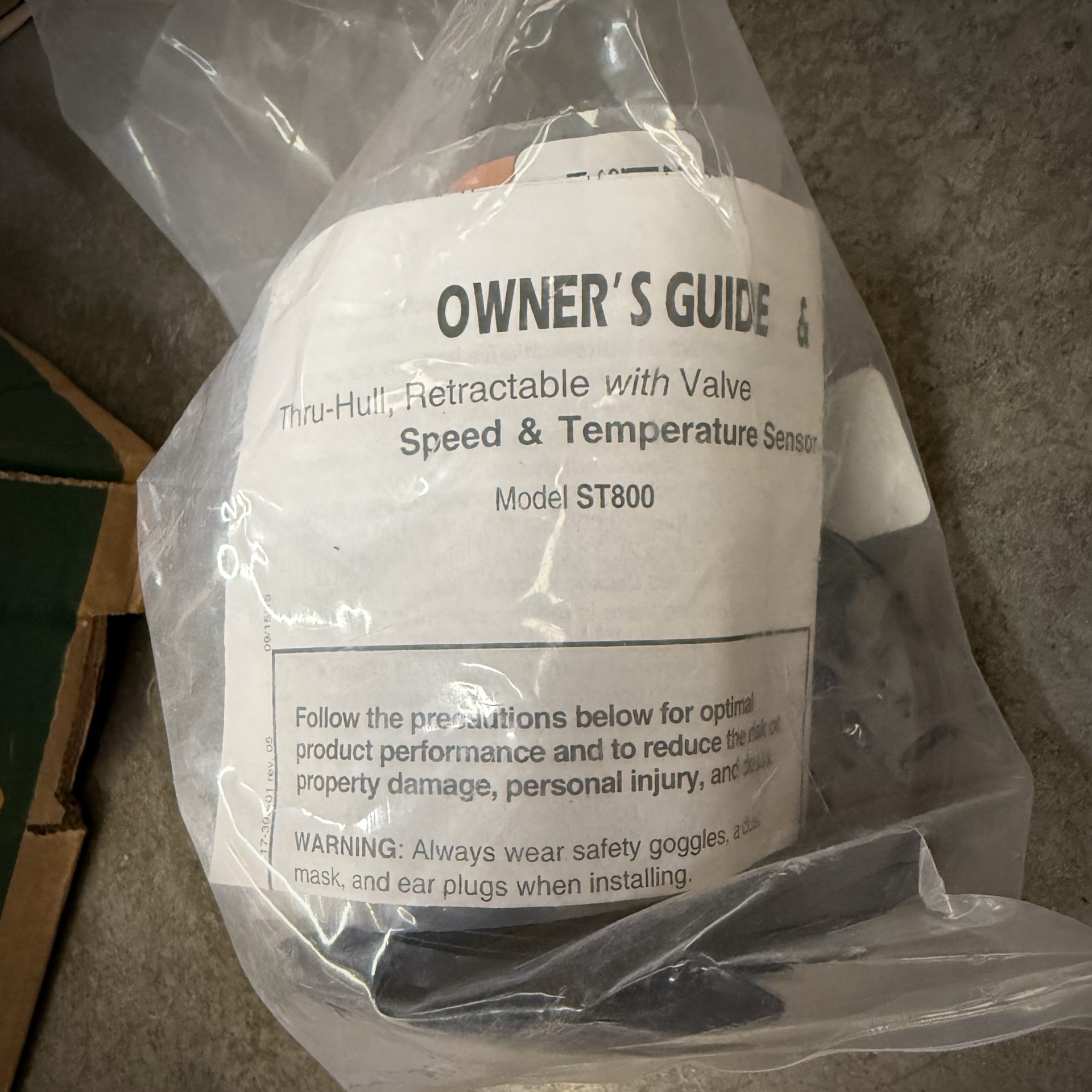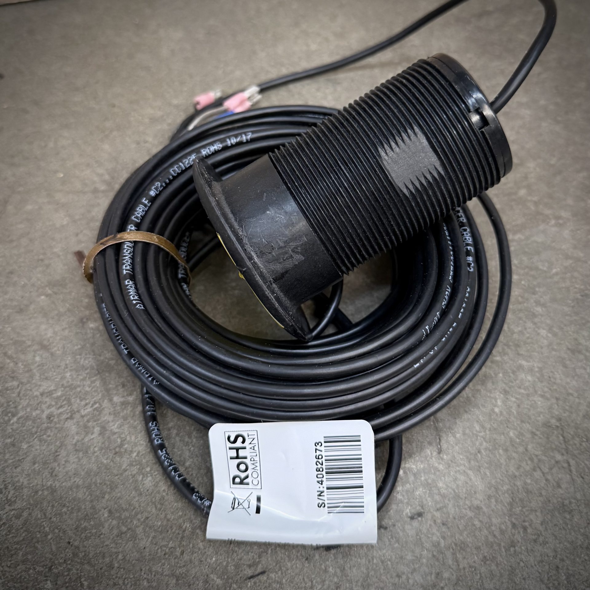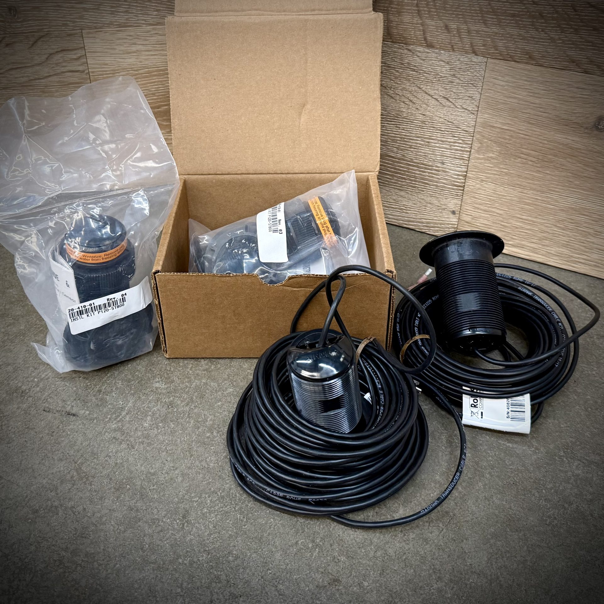Raymarine transducer measures boat speed + water temp. Use w/ SeaTalkNG networking systems. Suitable for install in fiberglass or metal hulls. Incl pprox 46-ft cable. Condition – like new. Purchase individually, or 2 sets avail.
