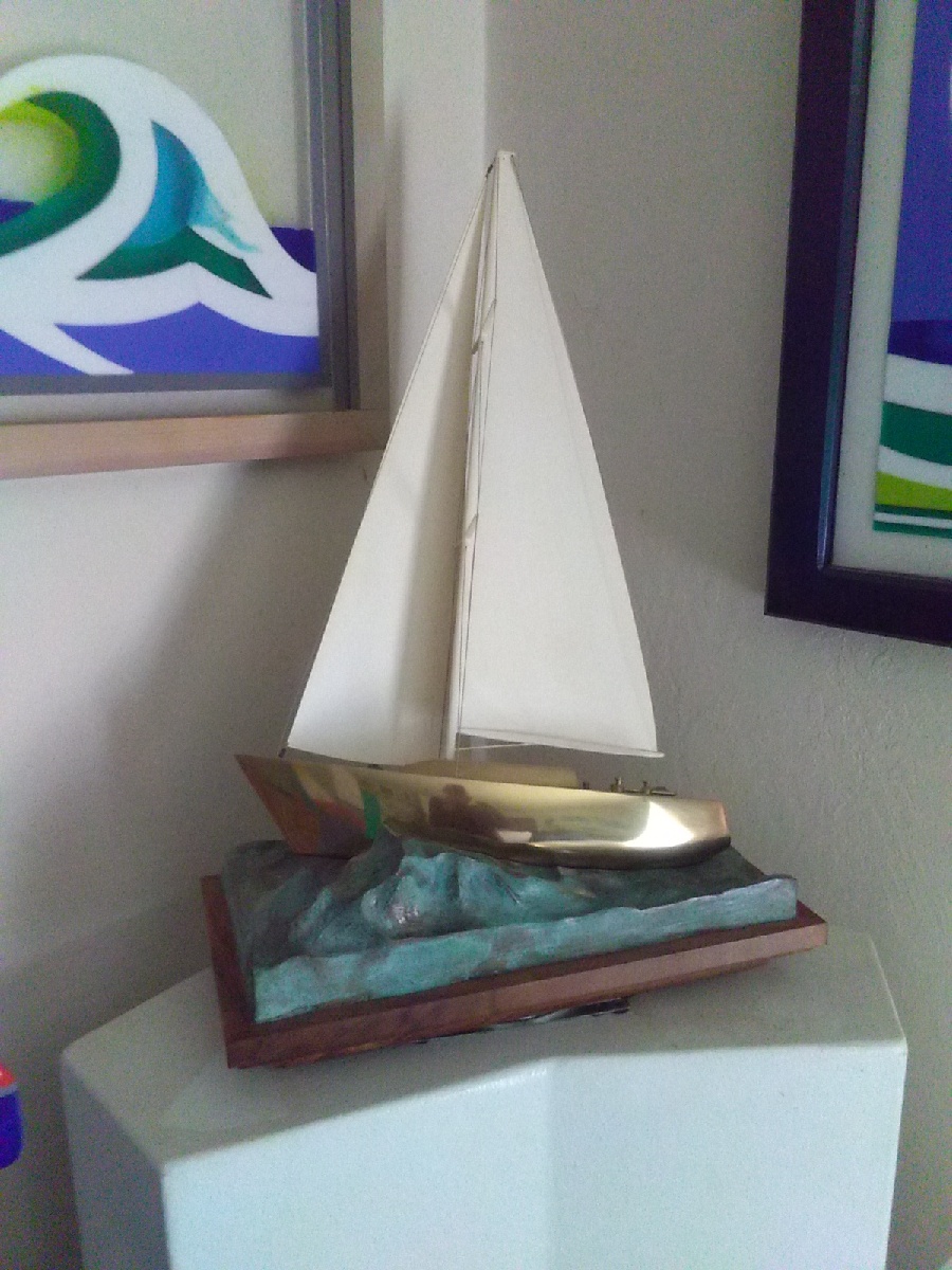 It’s time to let these go to the right home. Please text if you’re interested. SSS 1978 Trophy. Sextent. Fused glass “paintings” and Bronze sailboat sculpture. You have to come pick them up. Call Paul.