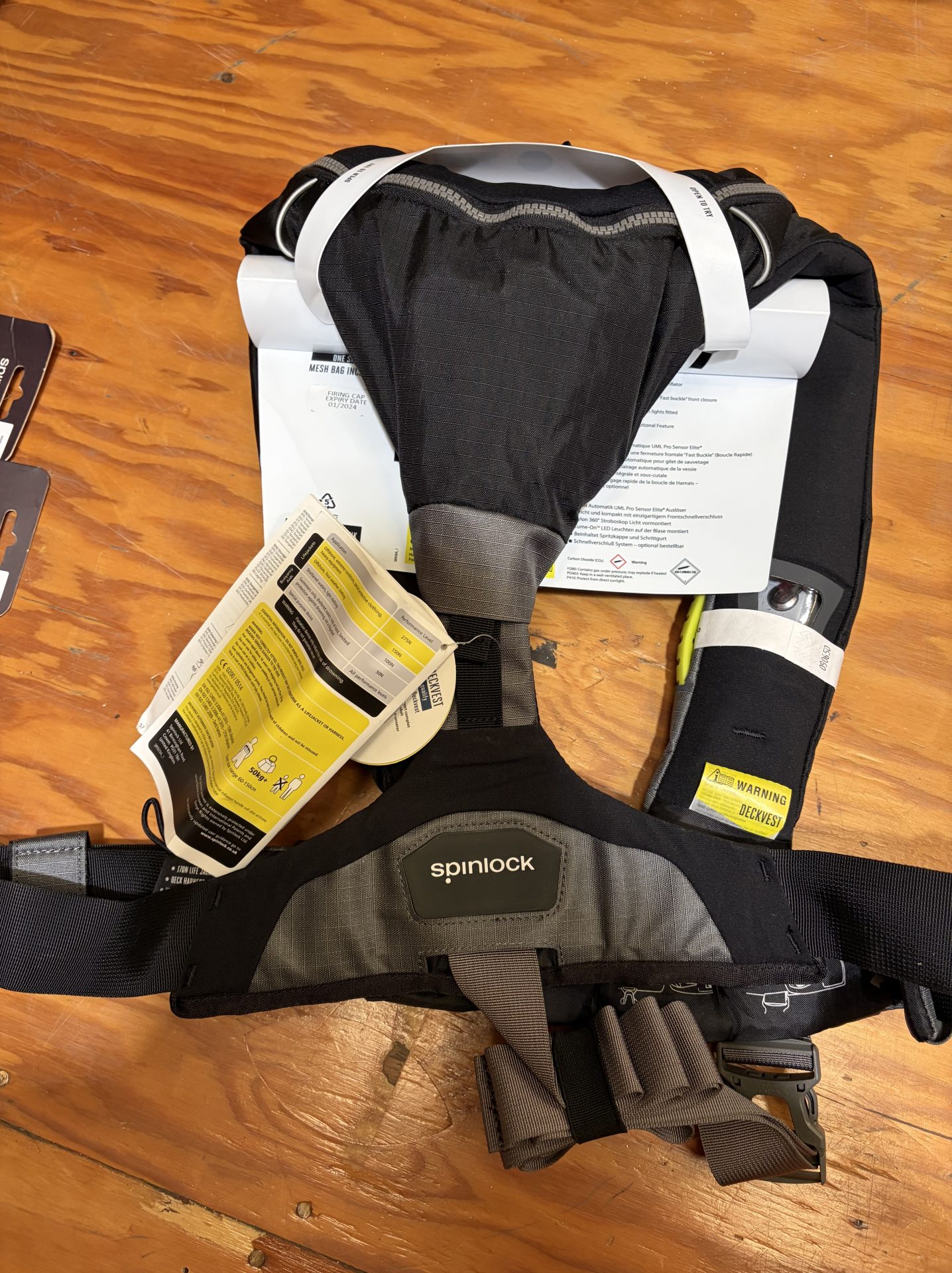 Spinlock Deckvest 6D. Brand new with tags, never worn. 170N. DW-LJH6D/A. One size fits all. Arming kit is expired. More details here: https://www.spinlockusa.com/en-GB/usa/products/deckvest-6d. Asking $180. Will throw in a new package of Lume-On bladder lights.