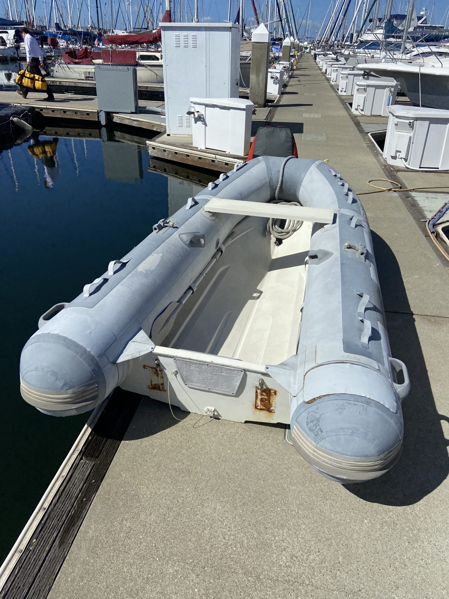 West marine fiberglass bottom dinghy. Good condition but does have a leak in the forward compartment.
