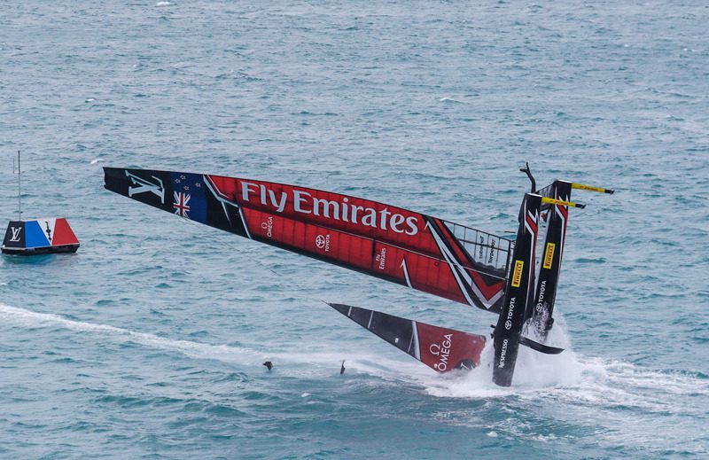 Team Emirates New Zealand suffered a dramatic wipeout yesterday just before the start of a Semi-Final race against Land Rover BAR — all crew were accounted for and reported safe. Racing has been canceled for today, giving all the teams a chance to lick their wounds. Team New Zealand pitchpoled yesterday just shy of…