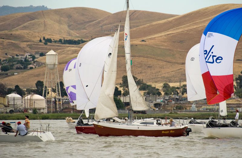 The dateline above is intentionally vague. For one thing, this story was filed from nowhere near an actual municipality. For another thing, our sources have requested that the exact location of the Ding-a-Ling Club remain mysterious to avoid the inevitable deluge of sightseers that would overwhelm the meager facility. Moore 24s and Express 27s sailing…