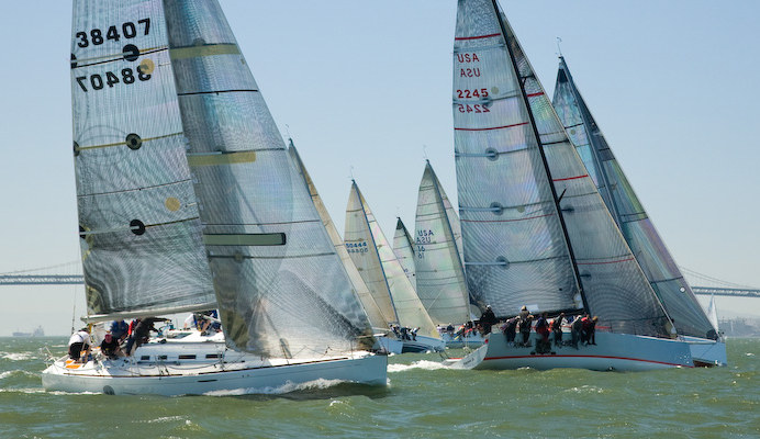 There were some fender benders out there, with Sy Kleinman’s veteran Schumacher 54 Swiftsure apparently getting the worst of it, coming together with Criminal Mischief on Saturday, and then getting T-boned by a J/24 on Sunday. There was another collision off Alcatraz on Saturday involving a boat in the 30-ft range but, at ‘Lectronic Latitude presstime, we had yet to track down details of any of these incidents, nor whether any of them were related to the thick fog that rolled in after lunch on both days. Look for that information in the June Racing Sheet.