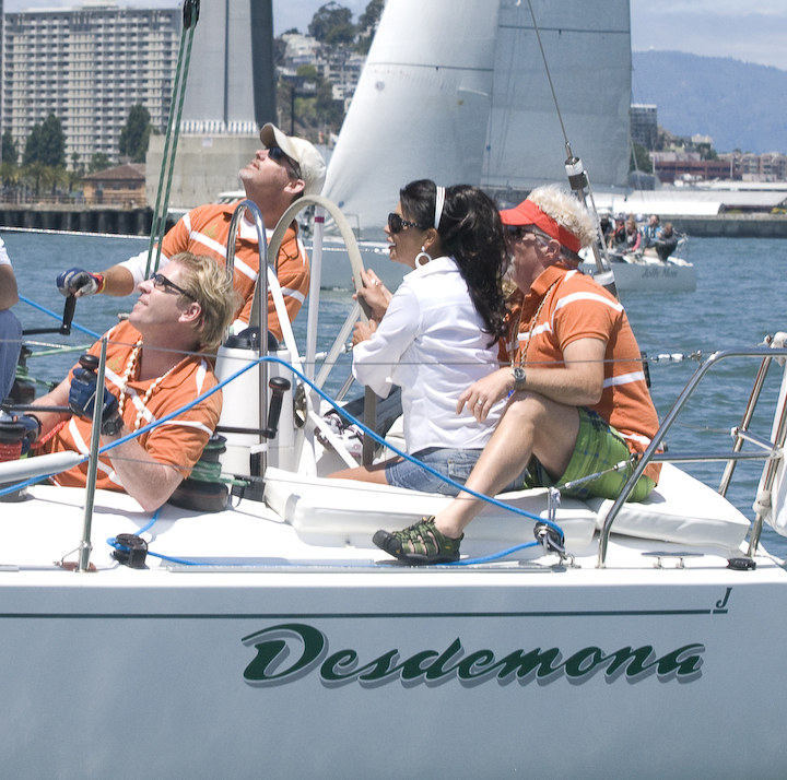 “This was one of the funnest days of my life,” said CBS weather anchor Roberta Gonzales of her day aboard John Wimer’s J/120 Desdemona. (Look for mention of the Media Cup during tonight’s CBS 5 weather broadcast.) The consensus rang true thoughout the après-sail festivities aboard Bay Lady at Pier 40 where contestants and volunteers gathered to enjoy food, a frosty beverage and the after-sail glow. This year, everyone was declared a winner in a 10-way tie. “Next year, it’s game on!” said CBS 5’s Jim Bernard, throwing down the gauntlet to other media to come out and play.
