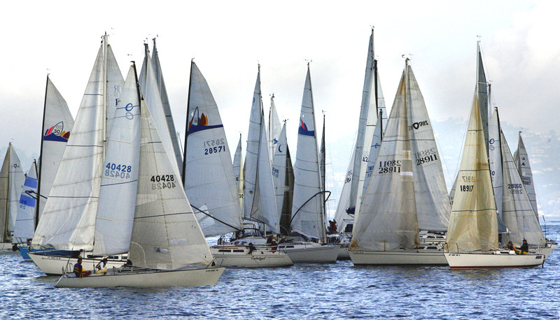 You’d think that whatever controls the weather might have felt inclined to reward the 322 boats that showed up Saturday for the Singlehanded Sailing Society’s Three Bridge Fiasco with a reasonably nice day. Well, you’d be correct. Although it looked at first like it might be a long, gray day without much prospect for breeze, Saturday turned out to be sunny and, depending on where you were and when, breezy.