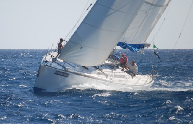 It sort of looks like . . . but it can’t be . . . but yes, steaming to weather just off the west coast of St. Barth and toward a finish line is Steve Schmidt, formerly of Saratoga, aboard his highly cruise-modified SC 70 Hotel California, Too. Schmidt has been spending most of the last decade living and loving the cruising life in the Caribbean.
