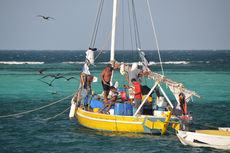 As Cliff Wilson explained, the little boats are seen aboard their mother ship, and are used to go fishing for fish, conch or lobster. "Each cayuga (not ‘dinghy’) is operated by one fisherman who ties it to his waist while fishing. They get dropped off in the morning, then picked up in the afternoon." But wait a minute, we know Cliff. He runs a sweet charter cat in Belize. So he’s disqualified on that technicality. (But we’ll be happy to give him some Latitude swag anyway.)
