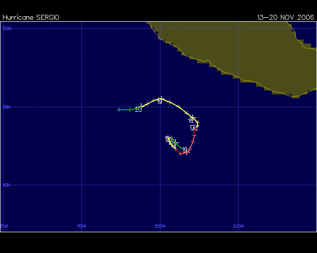 *’06 — H Sergio, Nov. 13-20, 95 knots, N/A. Another November hurricane in extreme southern Mexico.