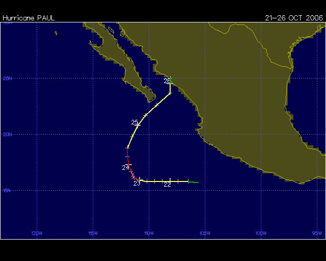 *’06 — H Paul, Oct. 21-26, 90 knots, N/A. Within 50 miles of Cabo, but with just 35 knots of wind.