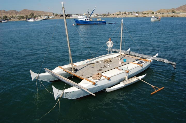Unfortunately, Maru Rere, Tieman’s replica of a Polynesian cat, was T-boned and badly damaged by a fishing boat in Malaysia about a month ago. Glenn was back in the States with his ailing father at the time.
