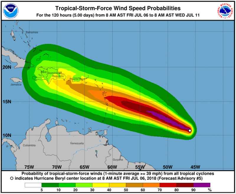 The 2018 hurricane season has just begun, and there already appears to be a significant hurricane heading to the West Indies. On its current projected course, Hurricane Beryl is headed for Dominica, which was devastated last fall by Hurricane Maria. The storm is still several hundred miles away.