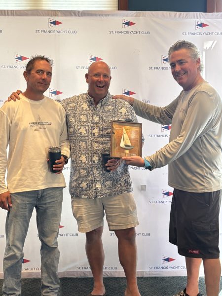 Congratulations to John Hansen and crew Ken Bodily for very consistent sailing, taking second, first, and second in the three races. A big thank-you to the St. Francis, regatta chair Brendan Bradley, race director Felix Weidling, and course race officer Tony Chargin.