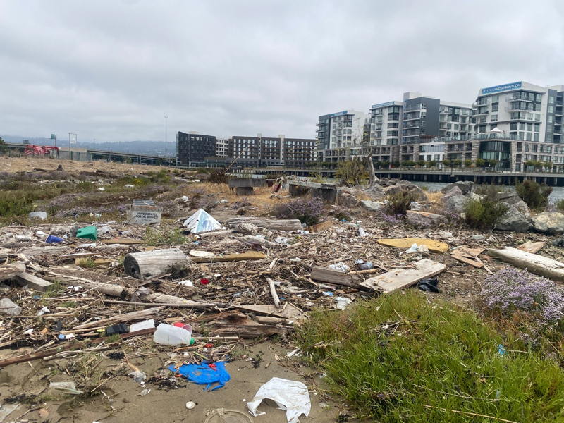 “I’m including recent images of the Oakland Estuary shoreline, where most of the larger debris collects. I plan to go out during the king tide to take more photos to show how far the tide comes in, and then again afterward to document how much debris is gone — pulled out into the Bay with the tides and storm.”