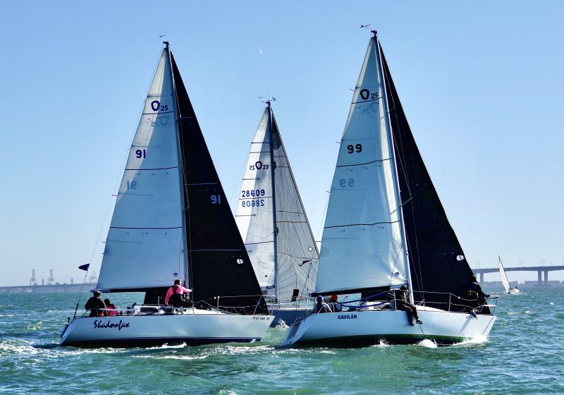 Steve Smith’s Synchronicity (RYC) finished within seconds to place second in race one, then pulled ahead in race two for first place. O’mar, with David Scott, kept a solid third in both races. Synchronicity won the day on tiebreaker by virtue of having the better finish in the last race.