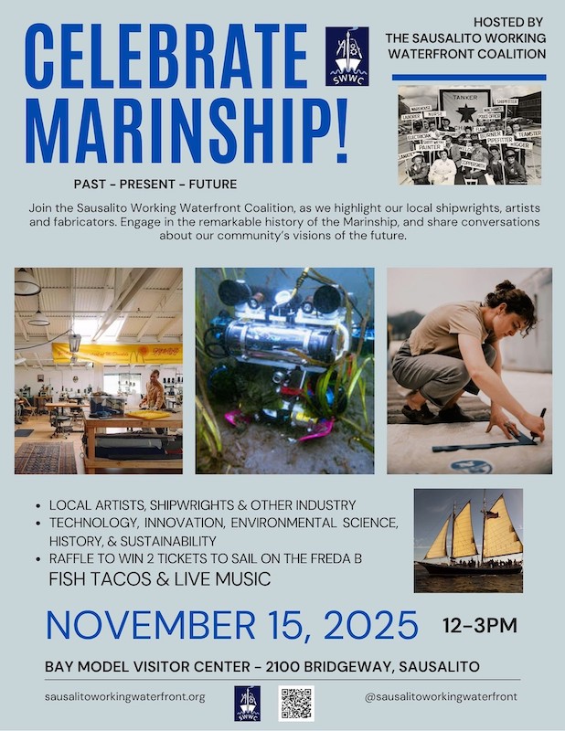 Sausalito Working Waterfront Coalition (SWWC) is hosting, “Celebrate Marinship: Past — Present — Future” at the Bay Model Visitor Center on Nov. 15, 12–3 p.m.