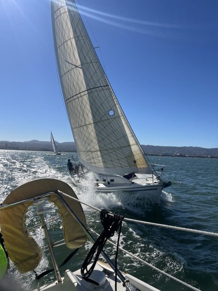The Coyote Point Yacht Club’s (CPYC) Saturday racing series drew to its grand finale with the Commodore’s Cup, and the Bay delivered a day worthy of its name. Clear skies, sun glittering on the chop, and a gentle forecast that promised light winds over roughly eight-and-a-half miles. The course began with a rabbit start at the marina to C, then to Z, then SF1, A and 8, and then home.