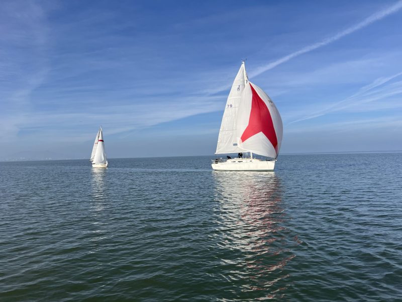 On the downwind run to 8, spinnakers bloomed — Paradigm and Lorelei’s catching what little breeze there was. Paradigm and Surprise! slipped past Sweet Grapes, while Ventus clung to the lead. But the fleet was restless and the wind fickle. Sweet Grapes, with her 150 jib and whisker pole set just so, found new life. She slid inside at 8, reclaiming her place in a rounding so tight it felt like a whispered duel.