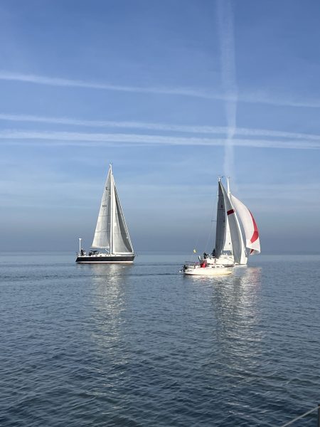 The fourth Sunday of our series began beneath a pewter sky, the kind that asks for patience. Morning brought no wind — only stillness — and even by early afternoon the air refused to stir. We delayed the start once, then again, and finally, at 1:25 p.m., the faintest movement arrived: a meager handful of knots, just enough to coax seven boats into motion.